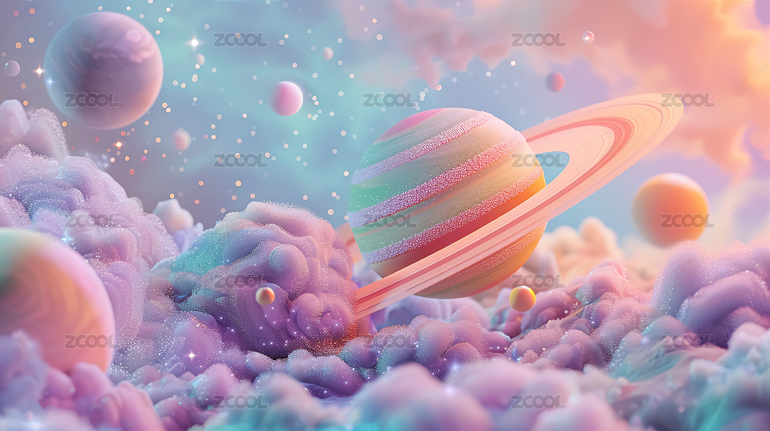 行星宇宙漩涡星球星空未来科技概念插画背景