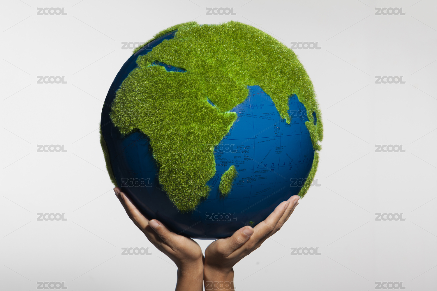 双手捧着的绿色地球 Hands holding Green Earth