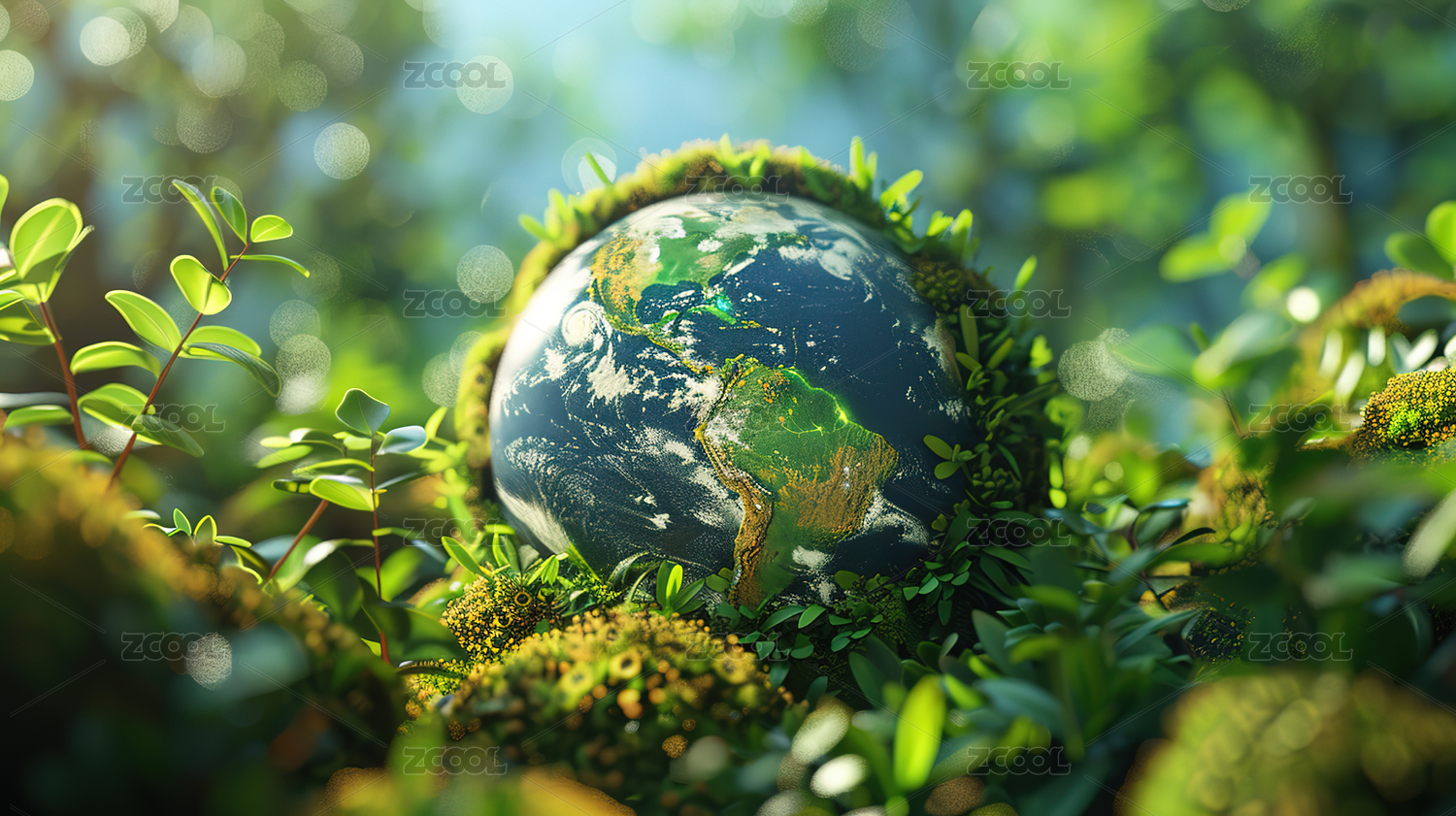植物丛中的地球环保保护地球