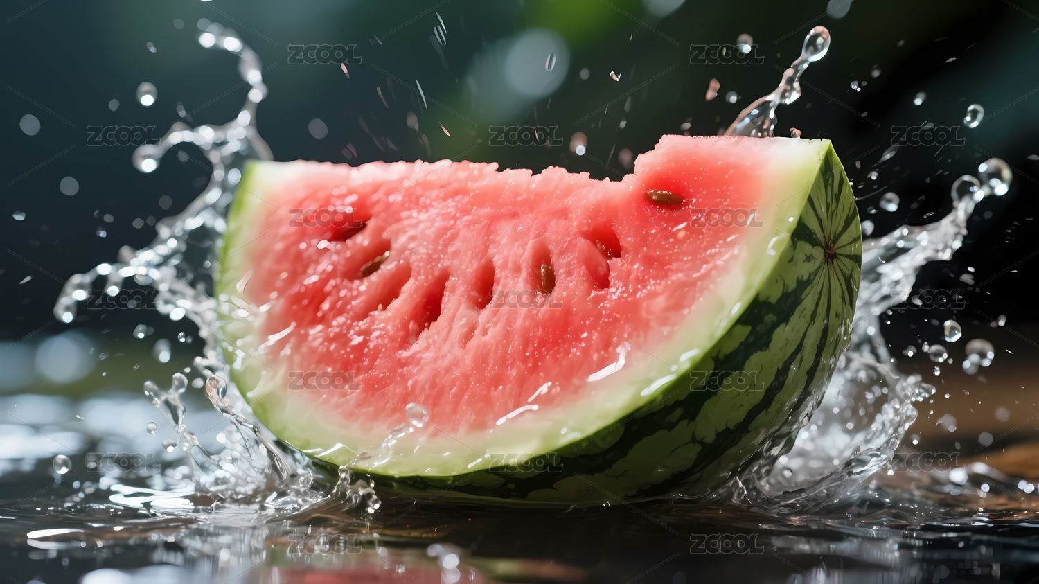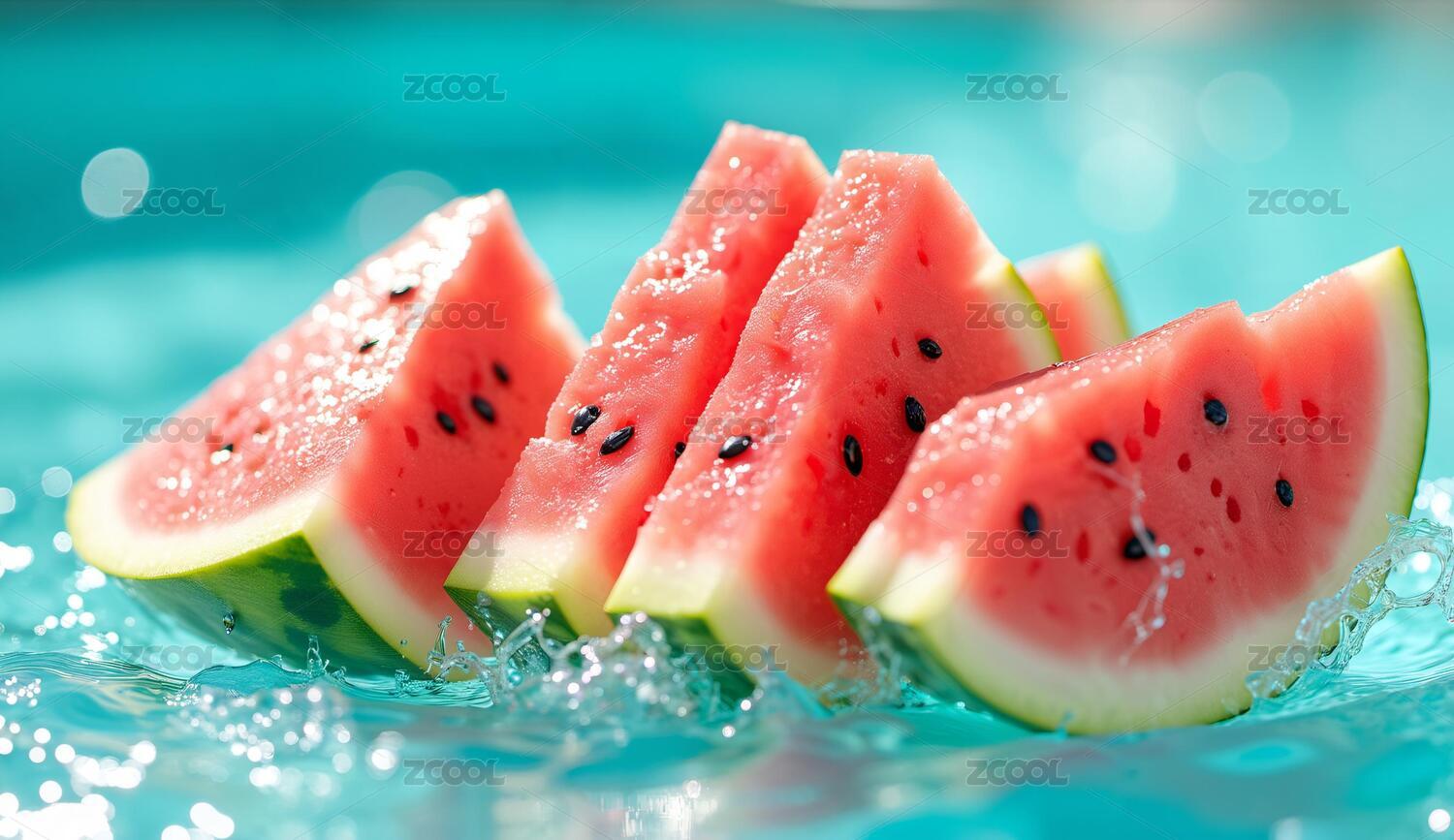 绿色,清新,西瓜,冰块,红色,果肉,外皮,水波,清凉,爽口