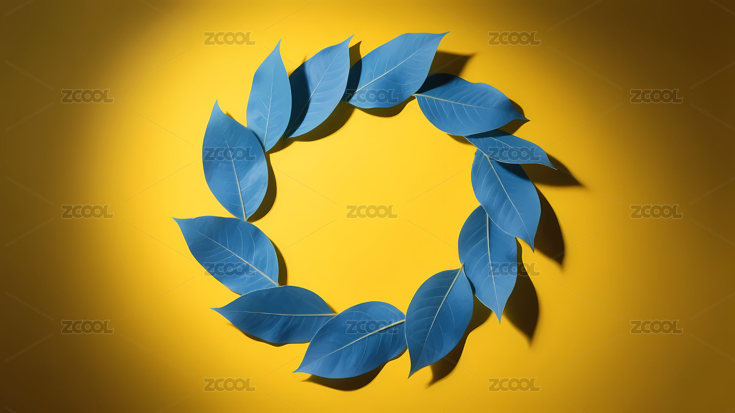 清新,叶子,蓝色,色调,黄色,花朵,圆形,和谐,花环,均匀