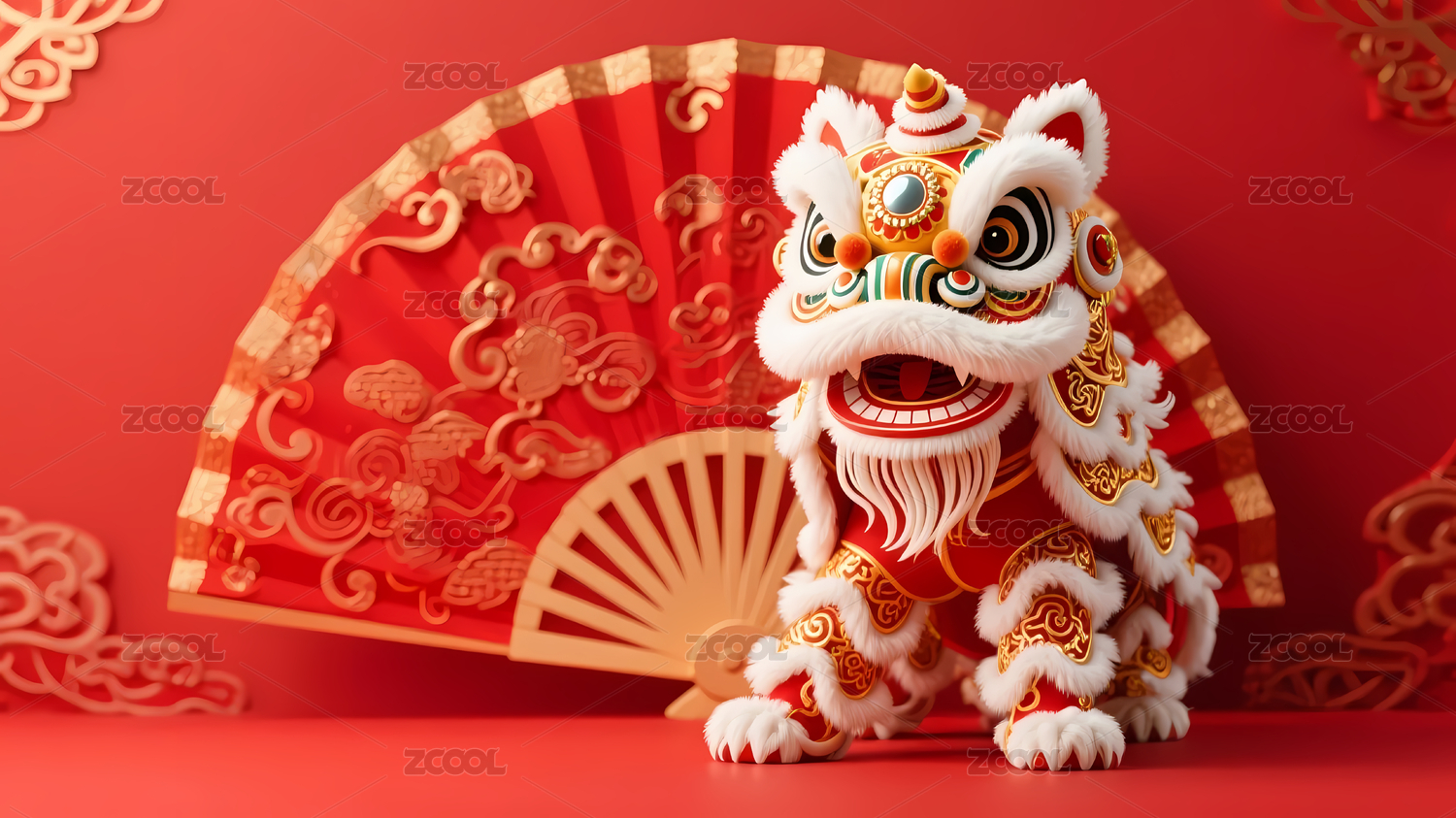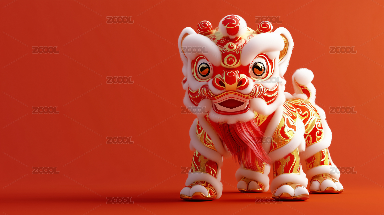 舞狮玩偶与红色背景