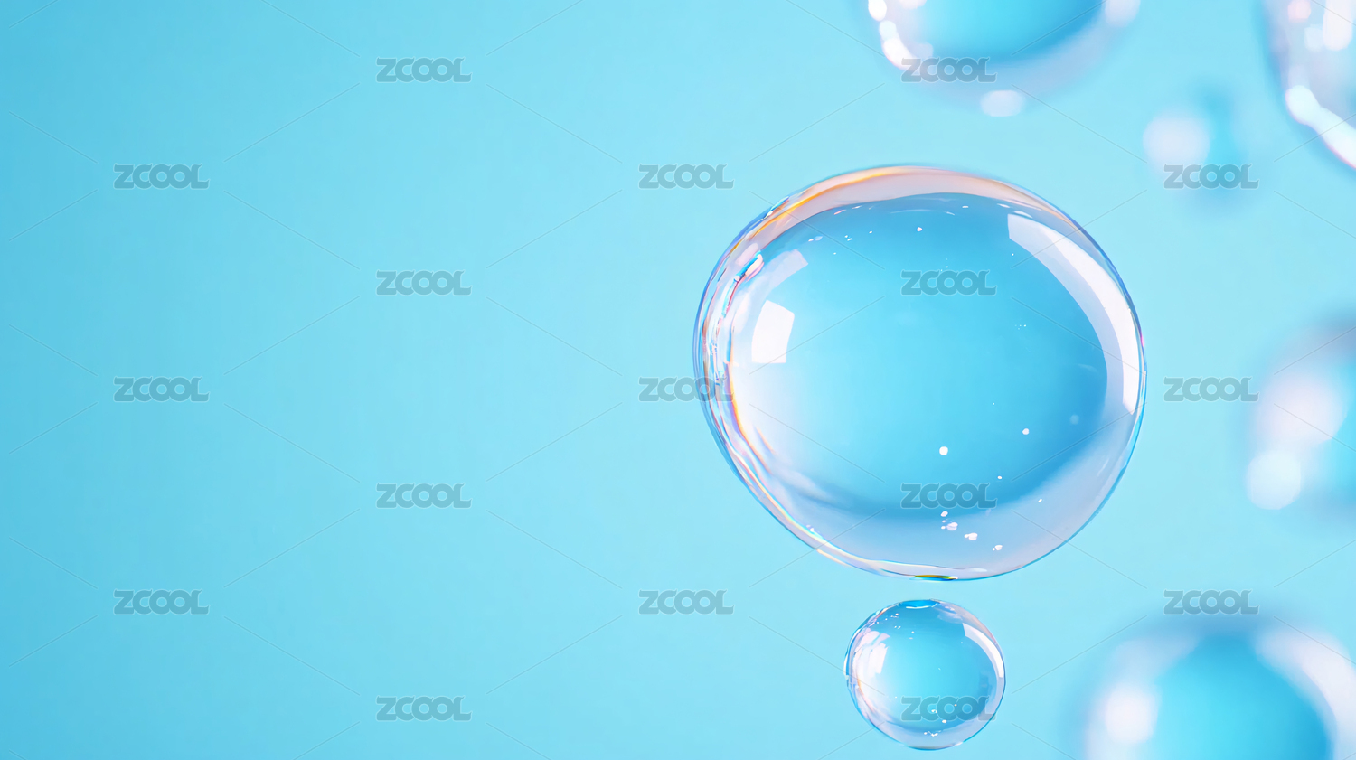 浅蓝渐变背景上的透明水珠
