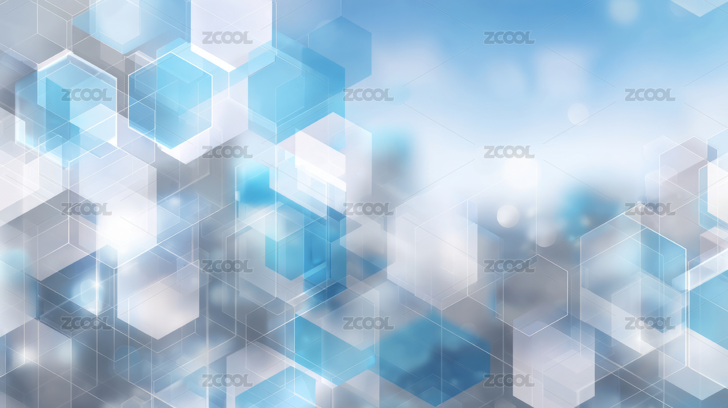 蓝白几何六边形抽象背景