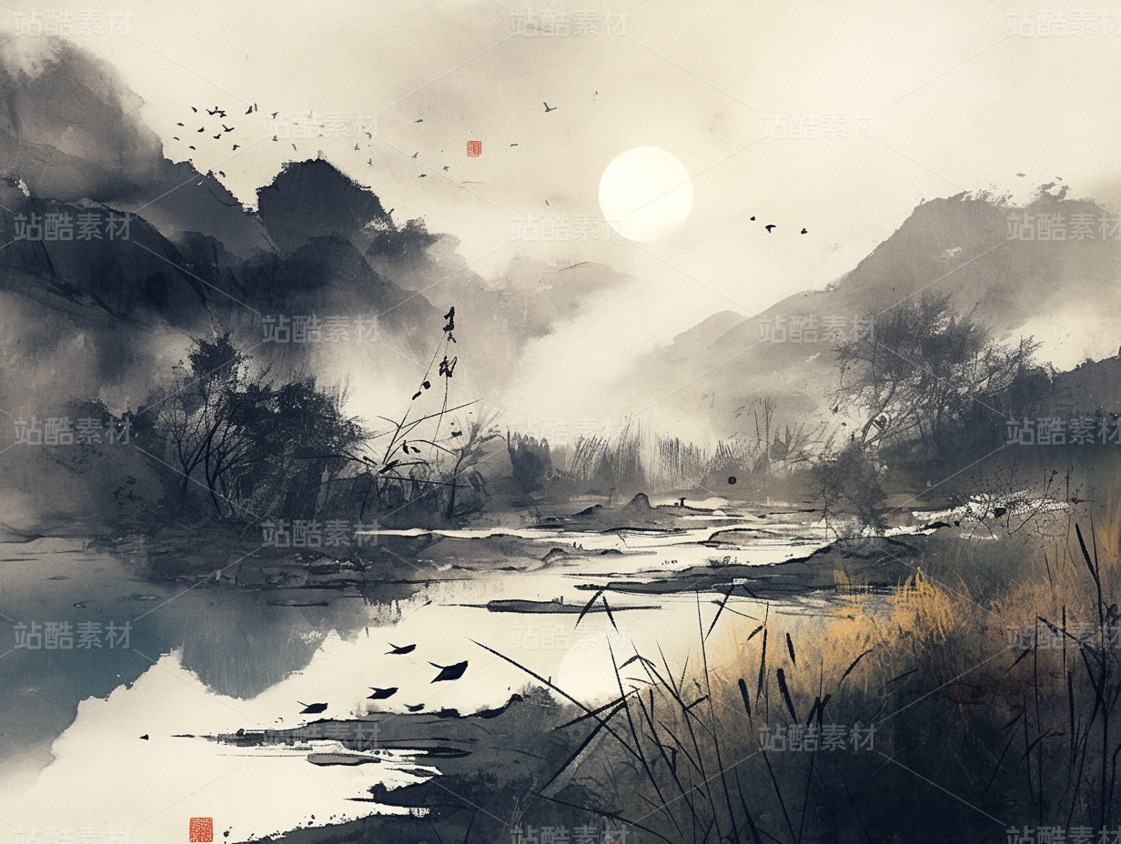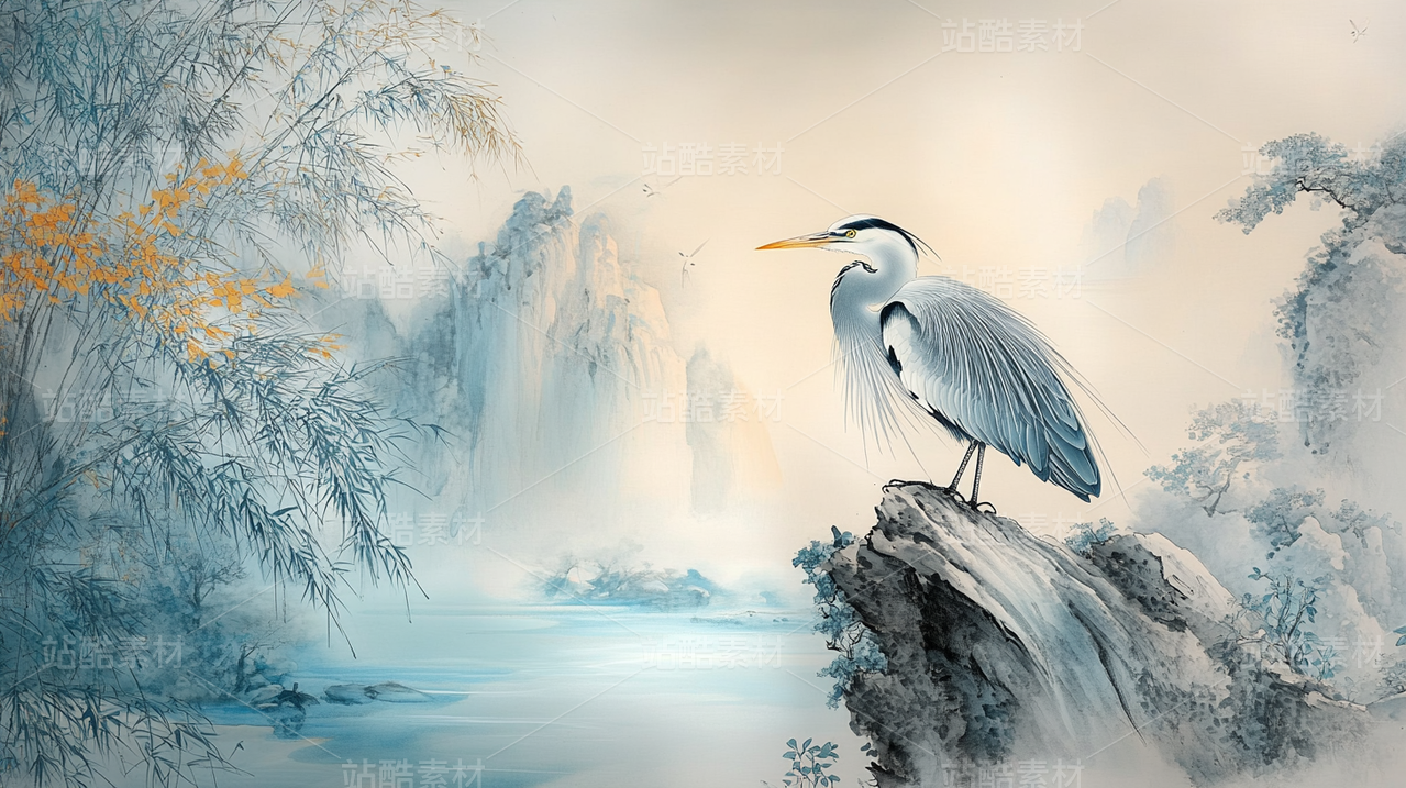 水墨花鸟水墨山水花鸟画新中式国画山水花鸟写意花鸟