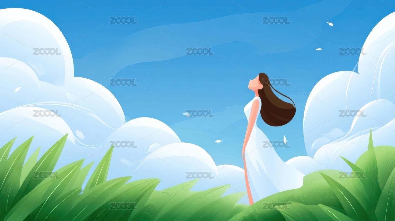 女孩,插画,卡通,春天,夏天,自然,清新,放松,休闲,户外