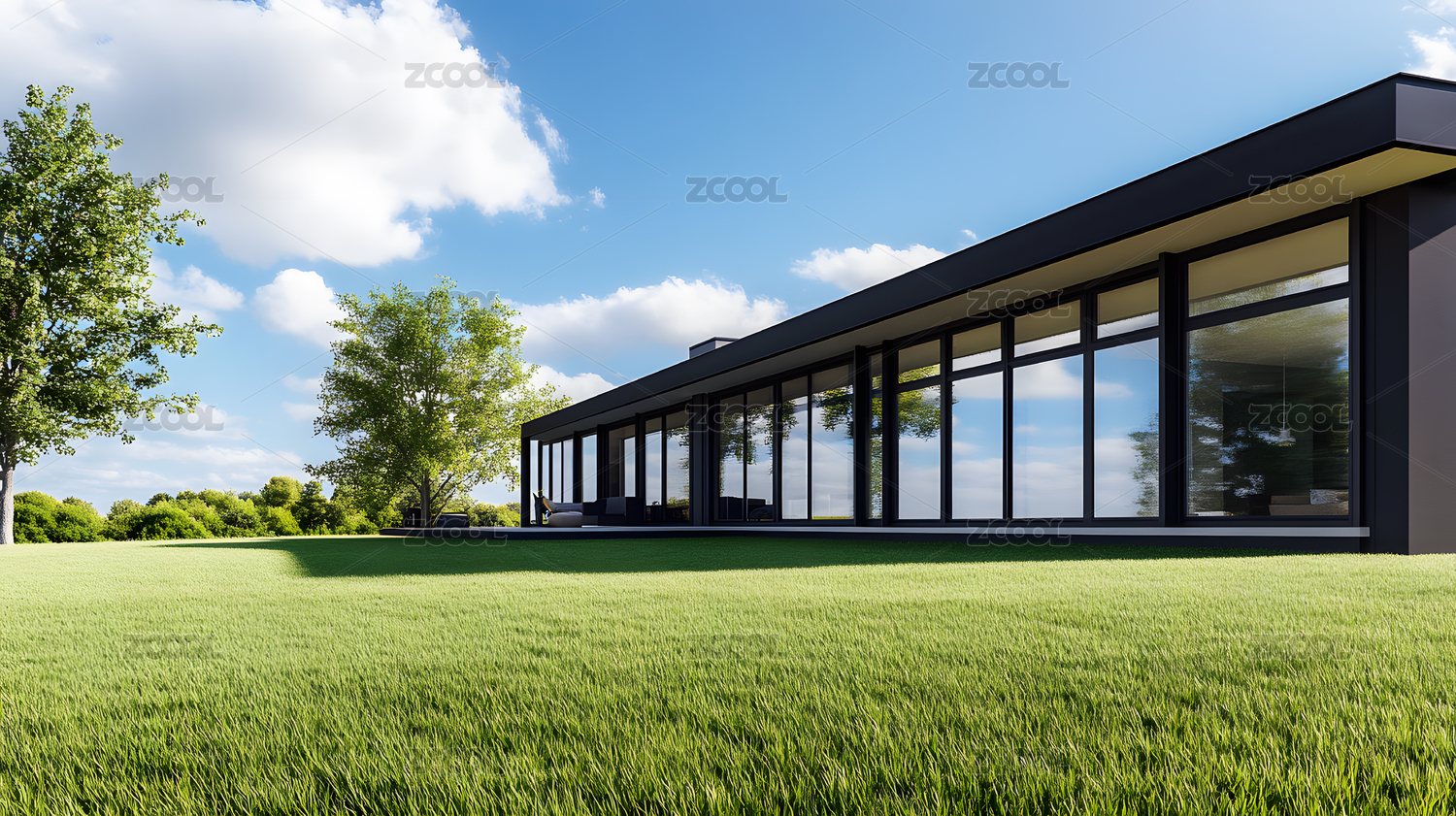 绿色田野上的现代简约住宅