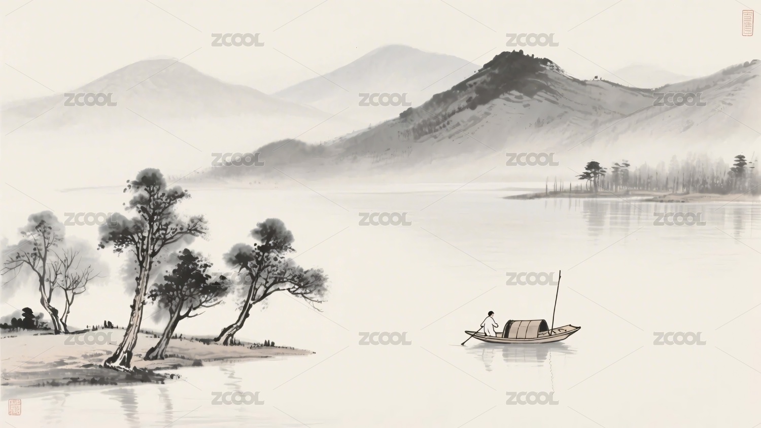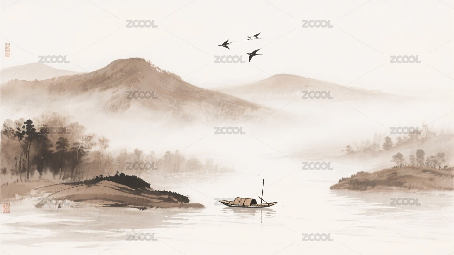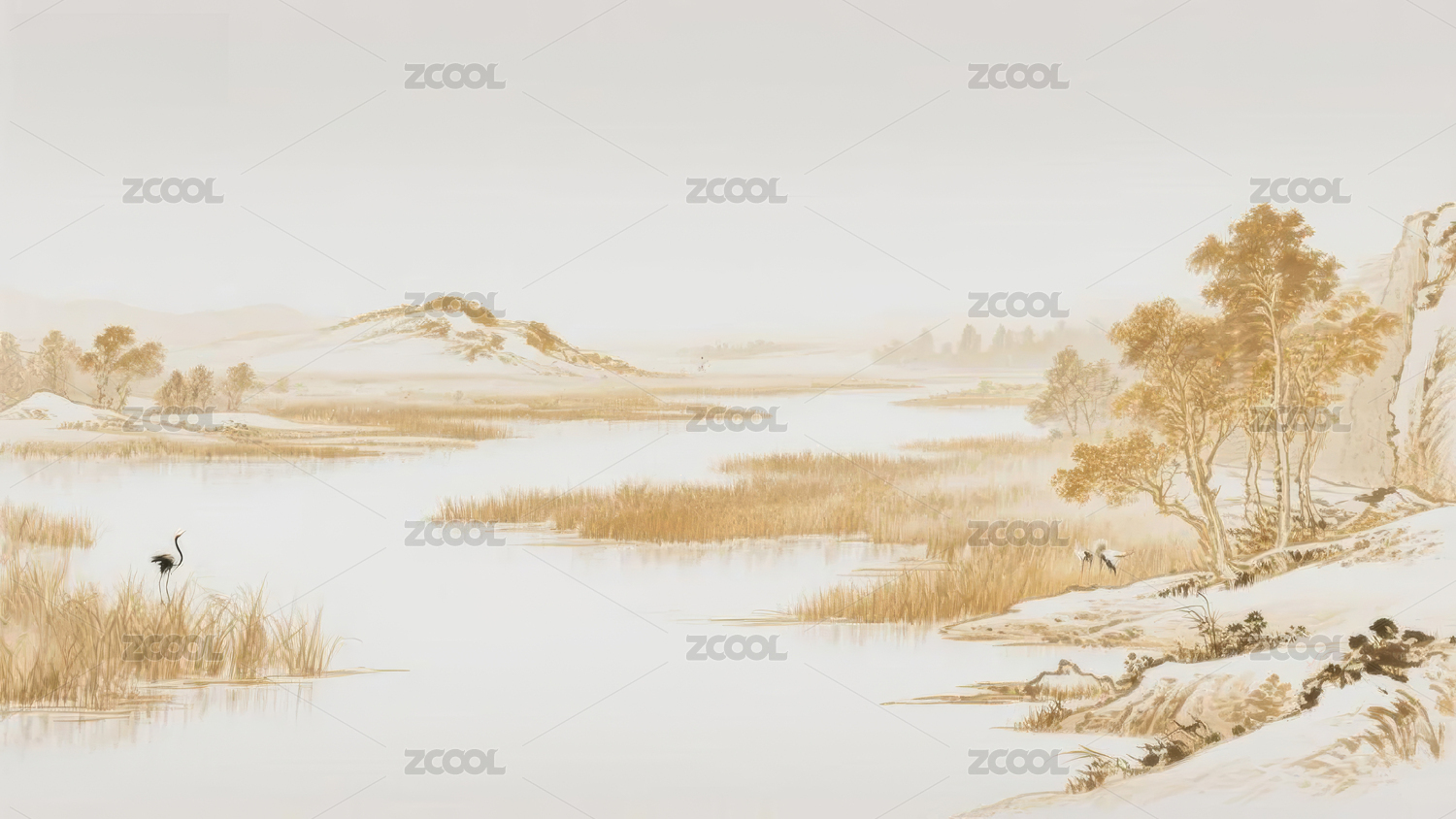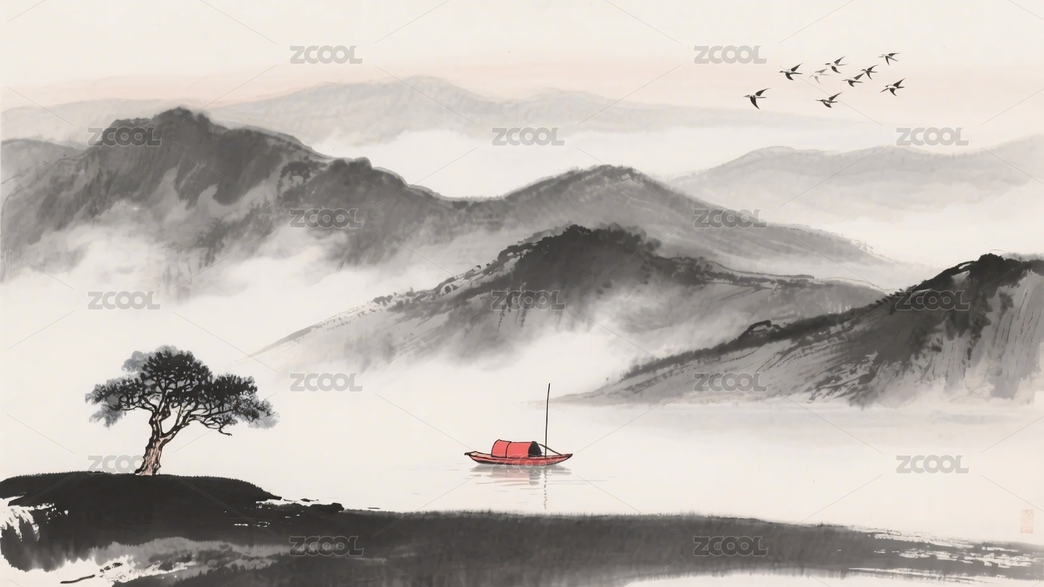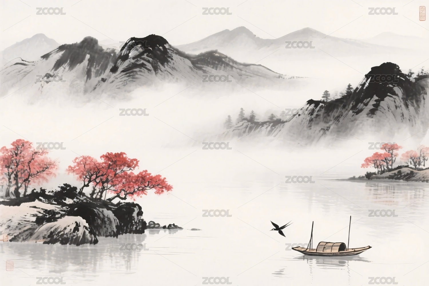 中式水墨花鸟水墨山水花鸟画国画山水画