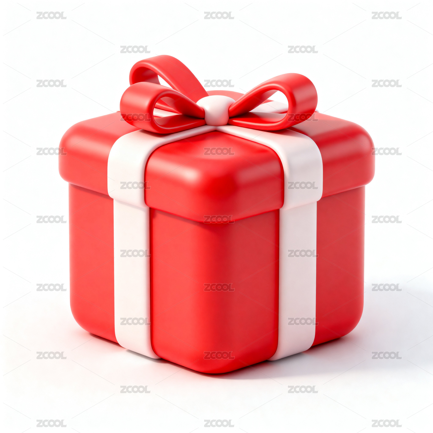 3D立体正视图白色蝴蝶丝带红色礼物礼品盒