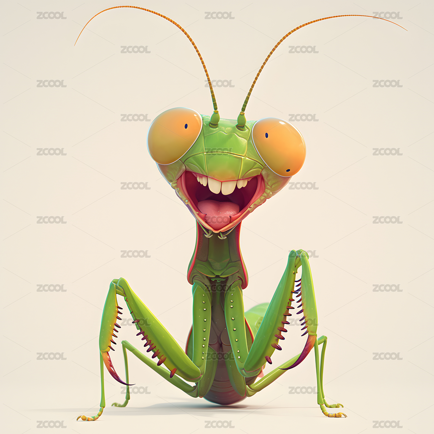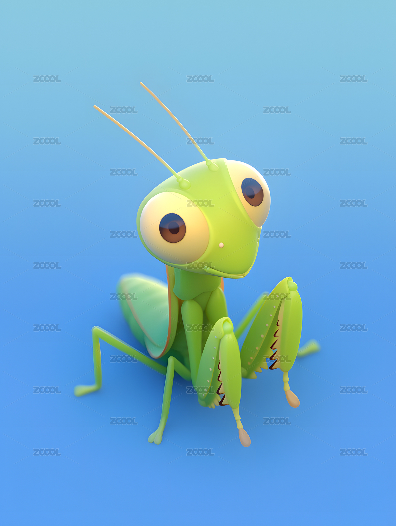 螳螂,卡通,绿色,昆虫,可爱,姿态,眼睛,触角