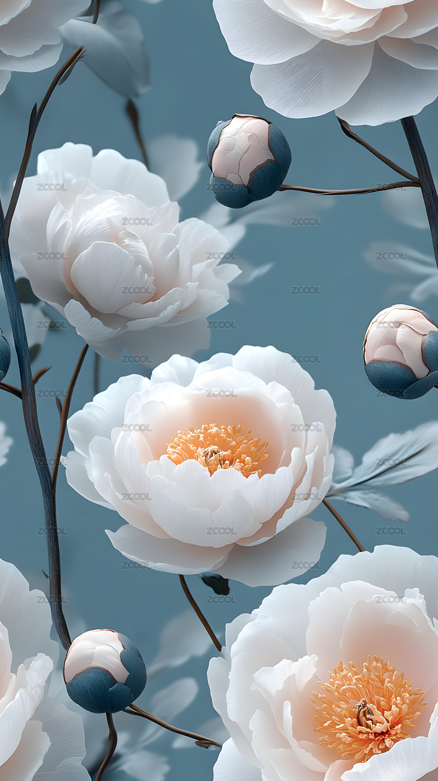 淡雅清新的牡丹花朵图案壁纸