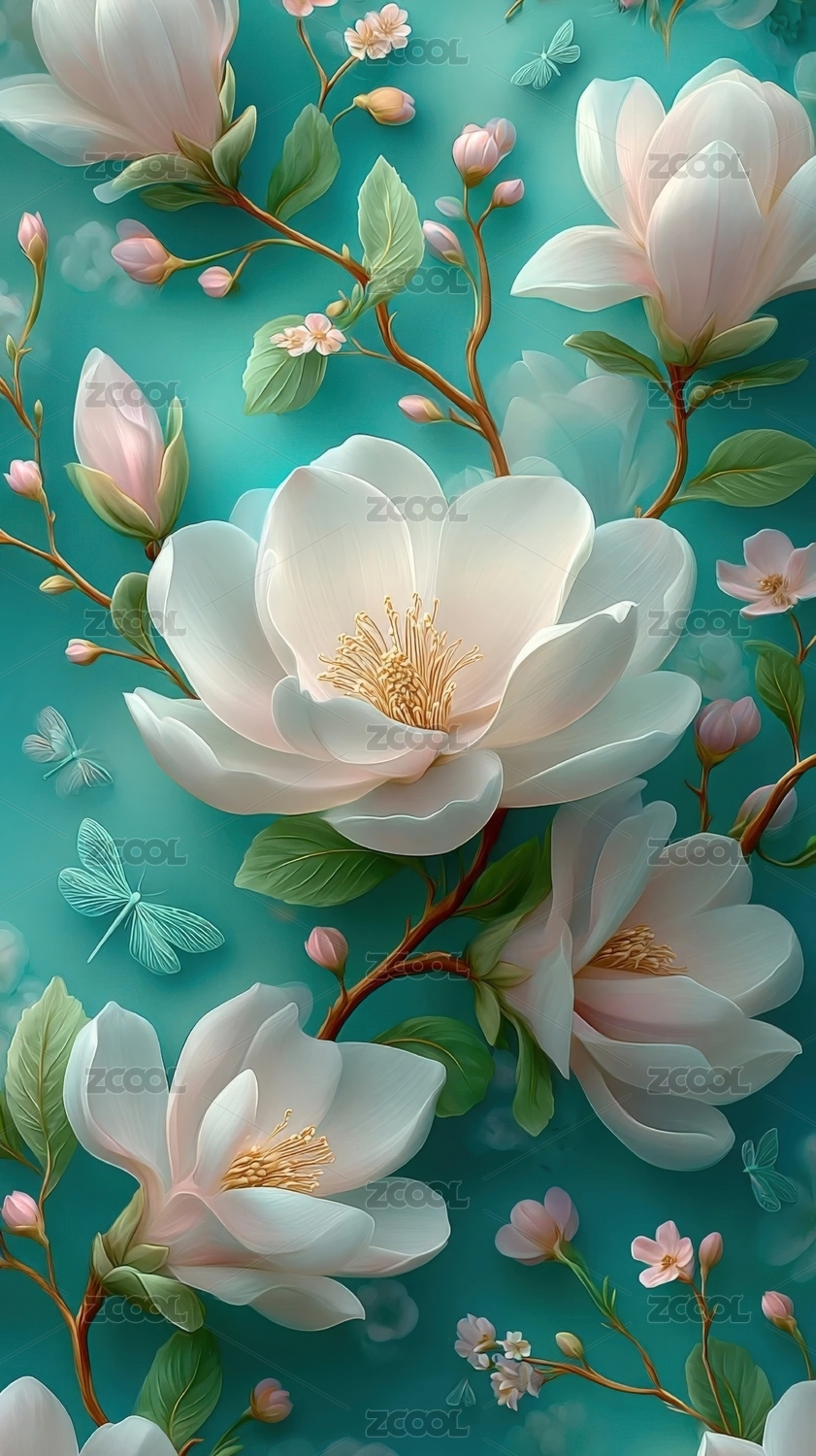 玉兰花与蜻蜓的春日花语