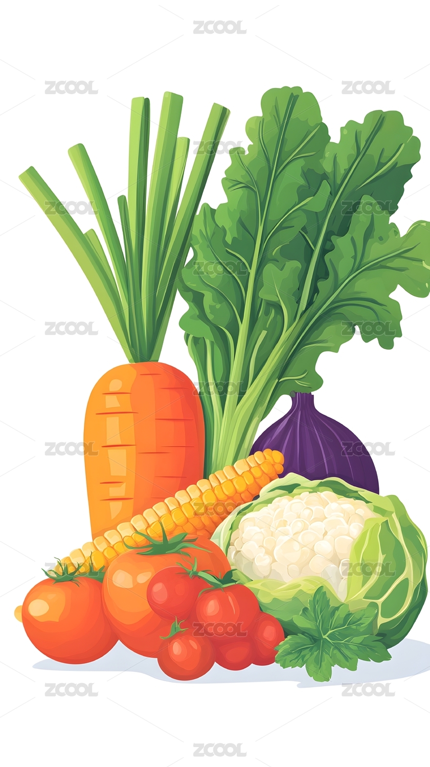 扁平插画风格 胡萝卜花椰菜洋葱番茄黄瓜