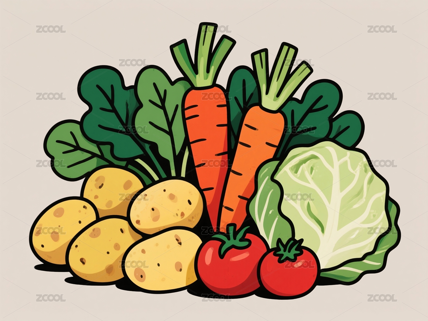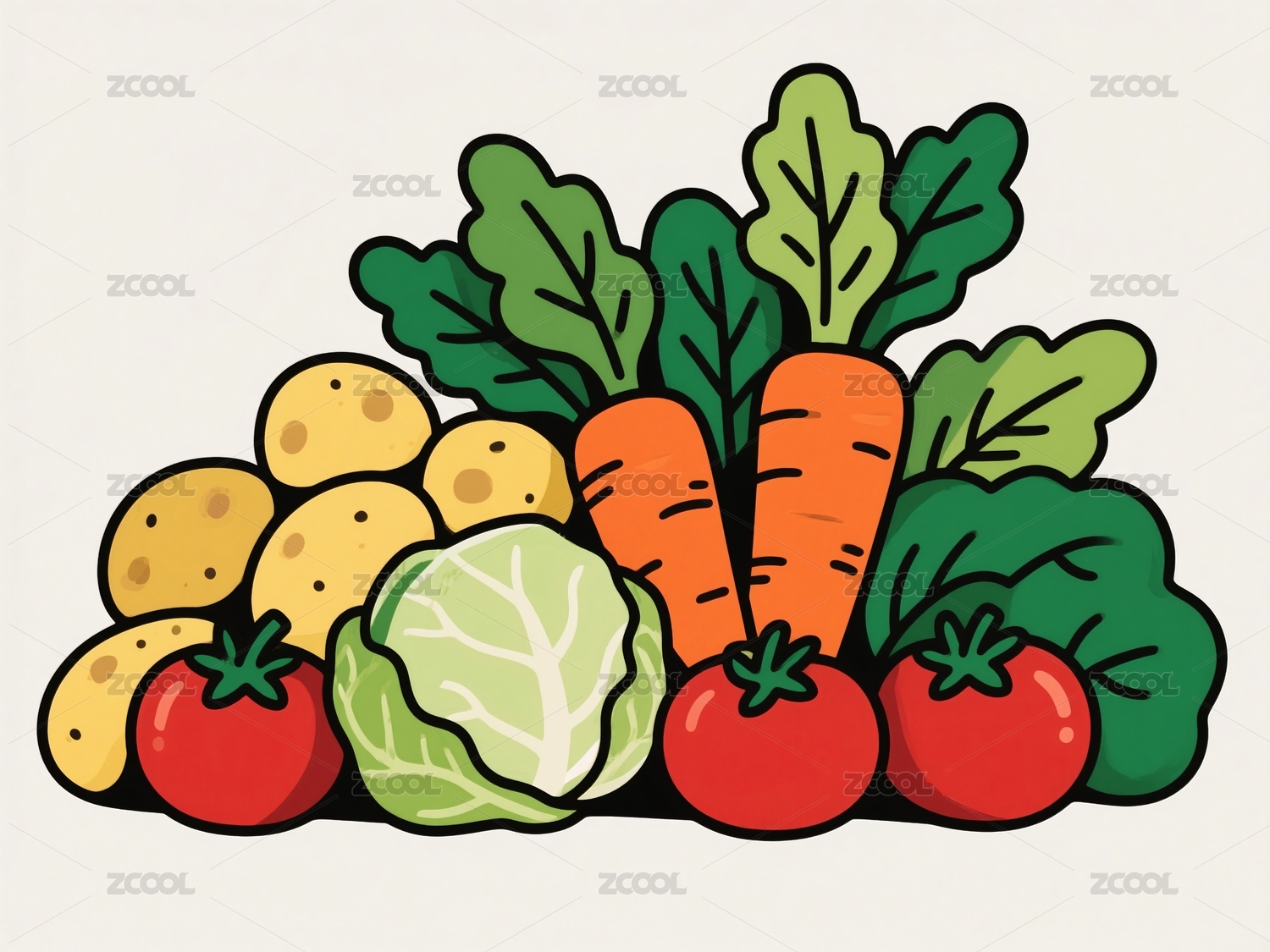 日漫风格 胡萝卜西兰花大蒜番茄辣椒茄子