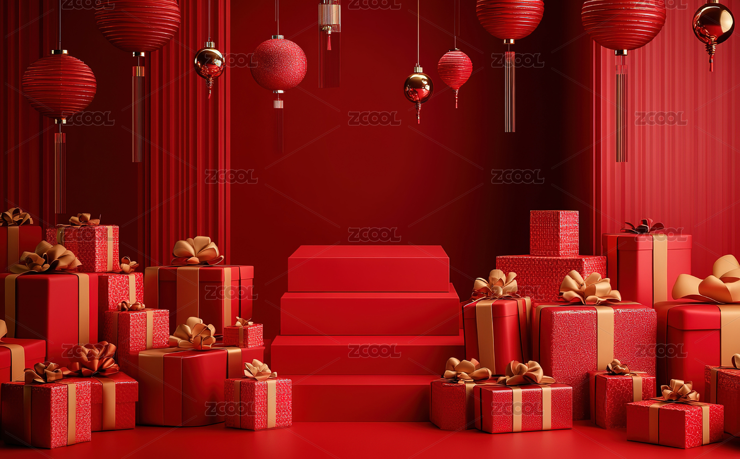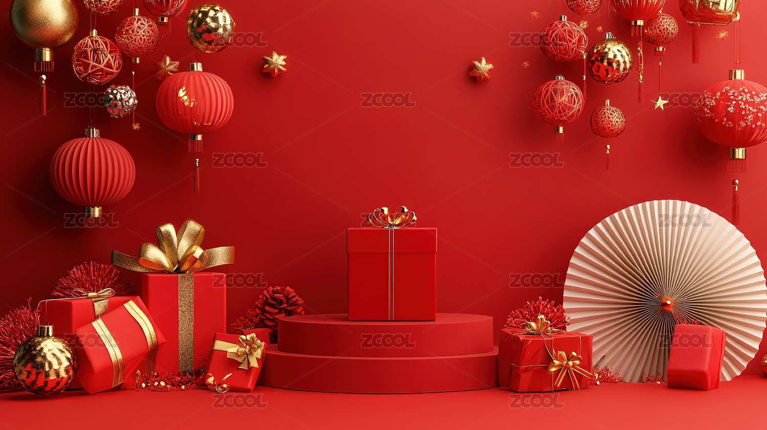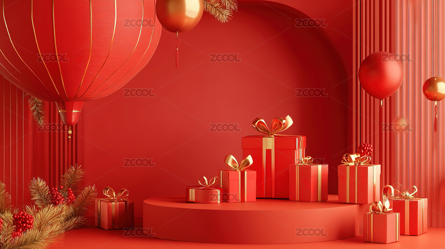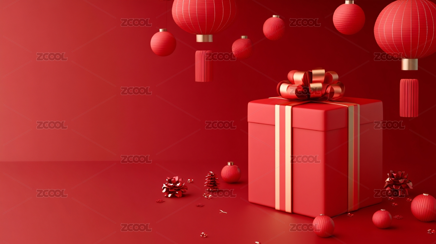 新年元旦元宵节日高级礼物礼物盒电商海报
