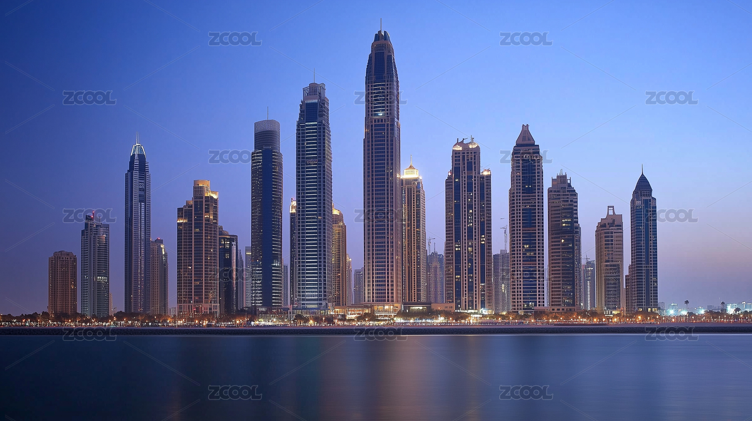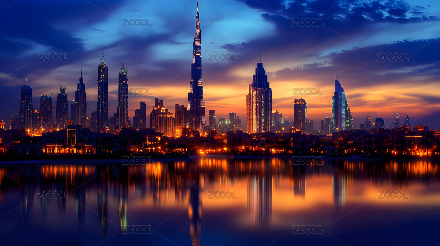 城市,夜景,建筑,高楼,灯光,摩天,现代,设计,蓝天,黄昏