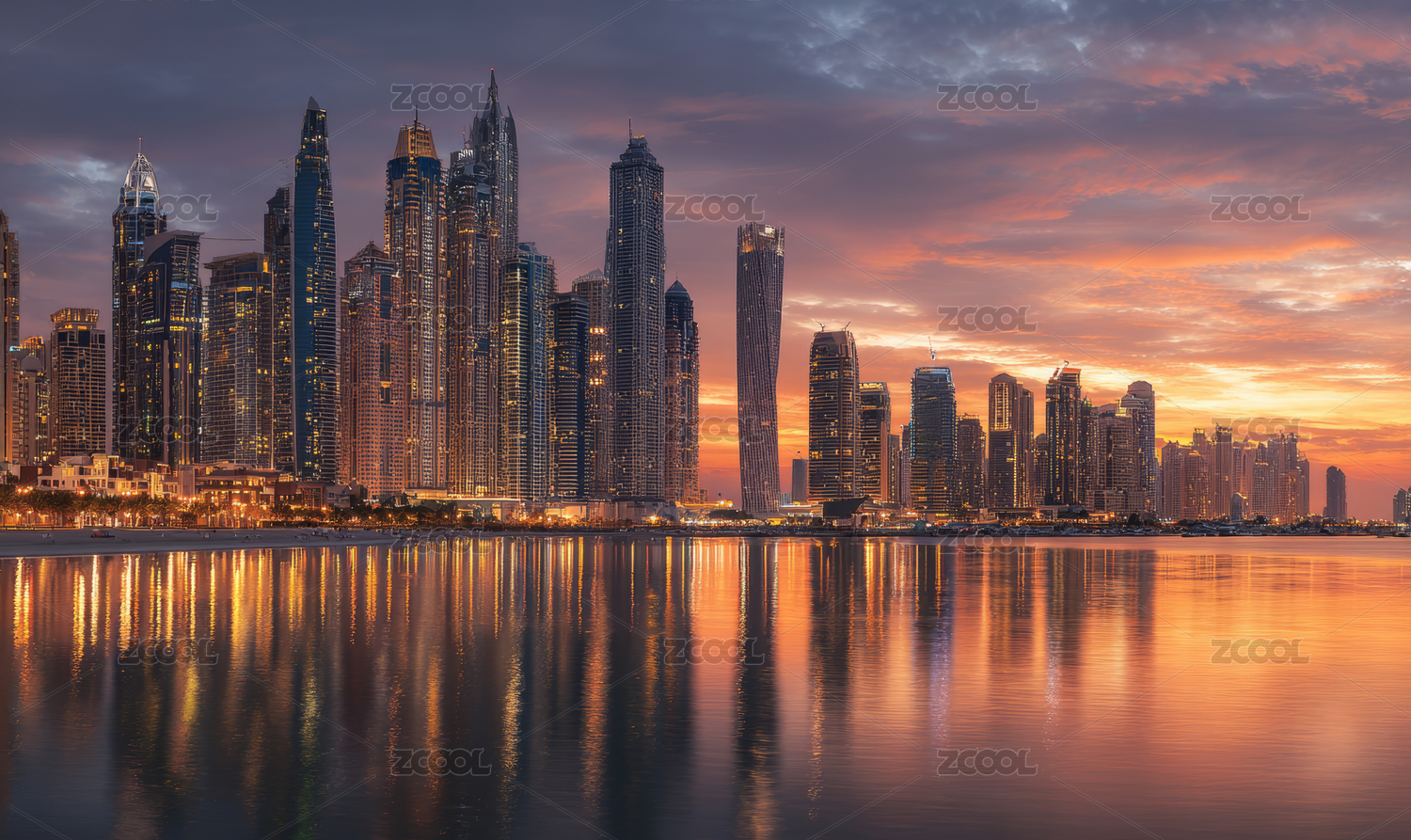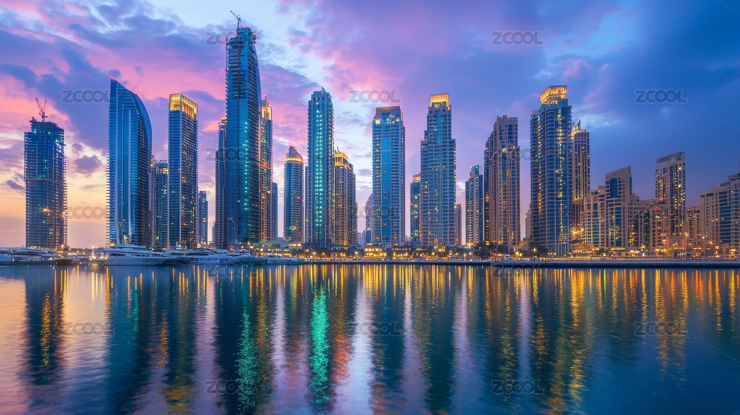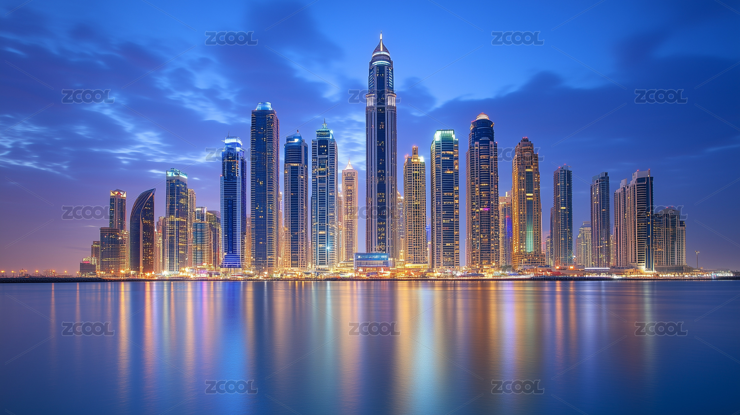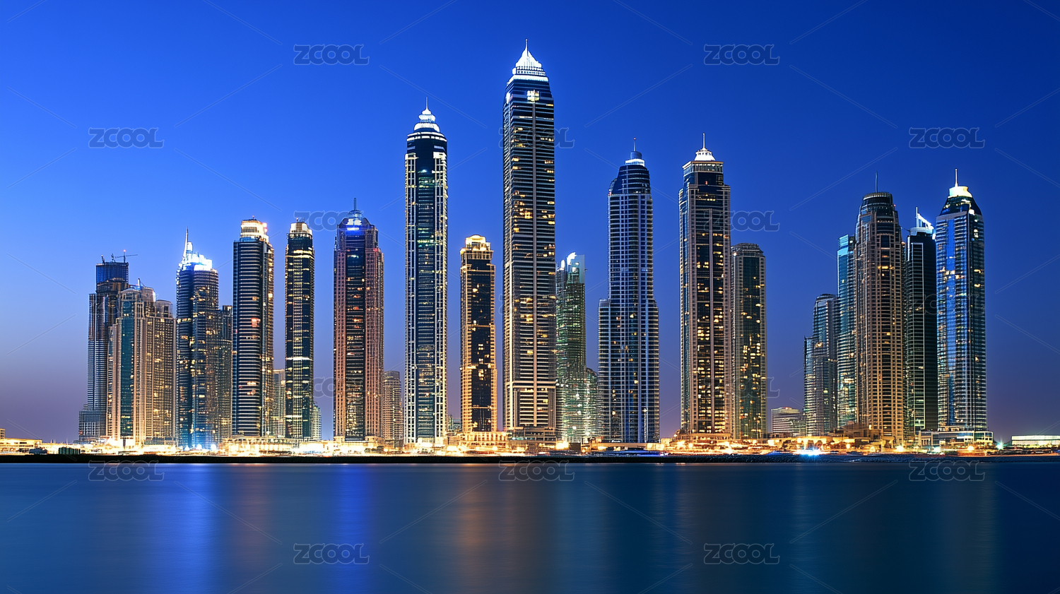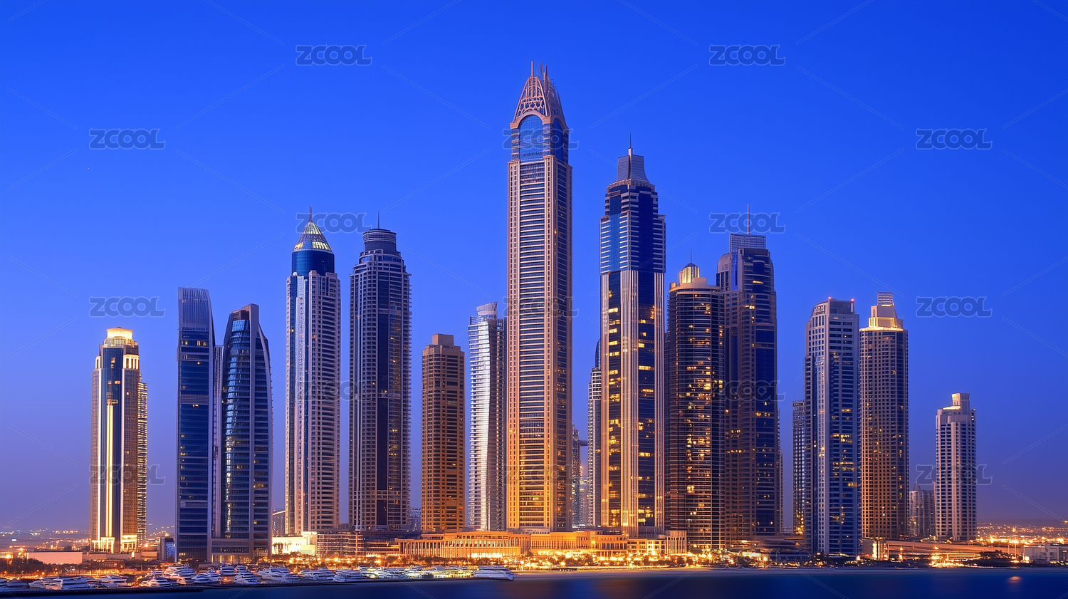 城市,夜景,建筑,高楼,灯光,摩天,现代,设计,蓝天,黄昏