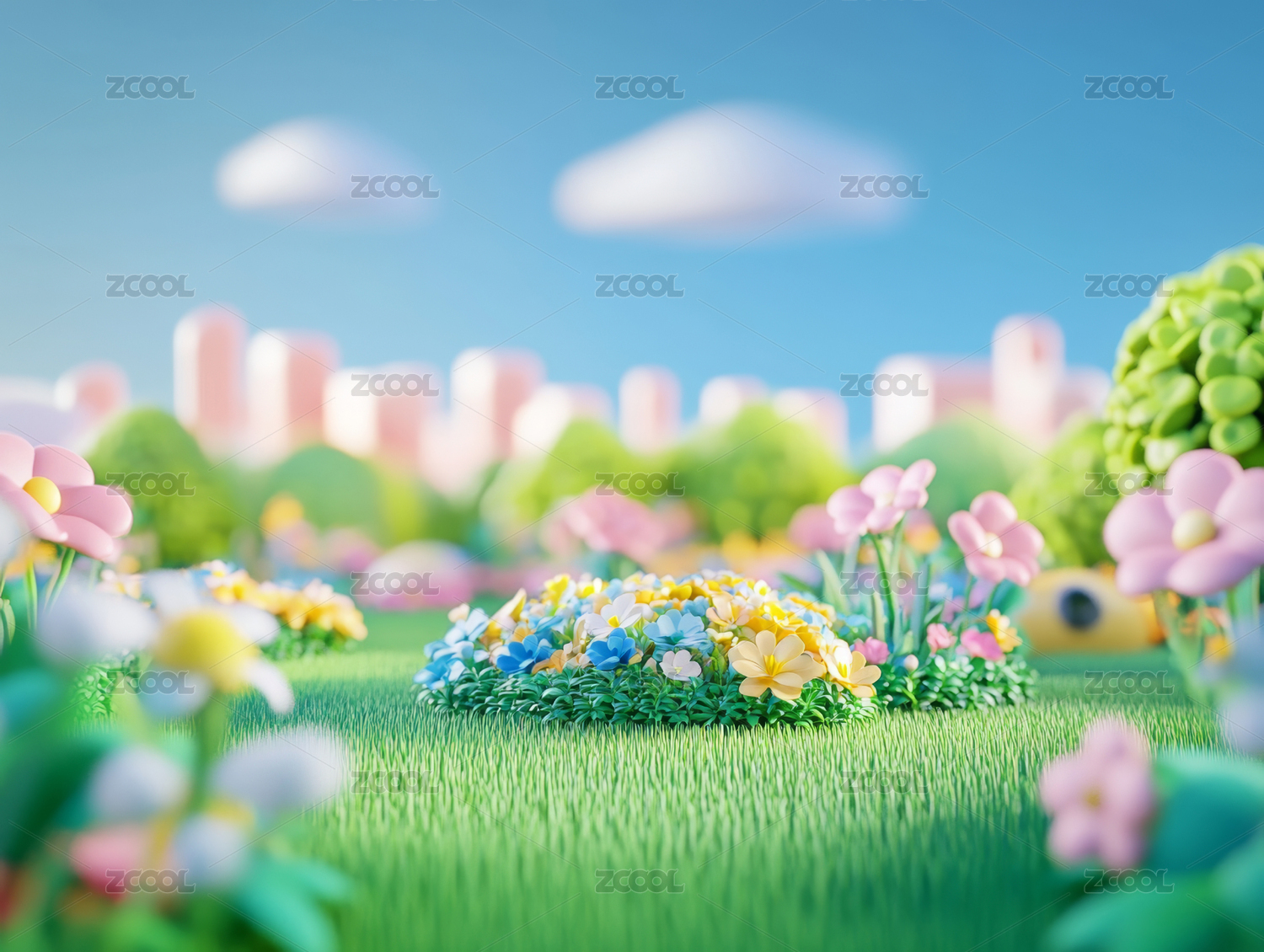 场景,3D,草地,梦幻,背景,卡通,可爱,色彩,树木,春天