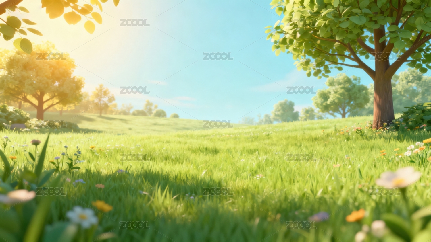 场景,3D,草地,梦幻,背景,卡通,可爱,色彩,树木,春天