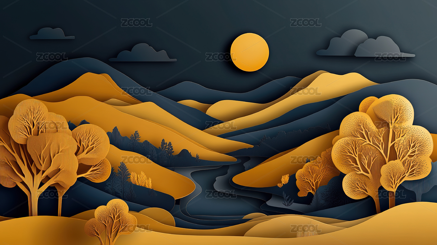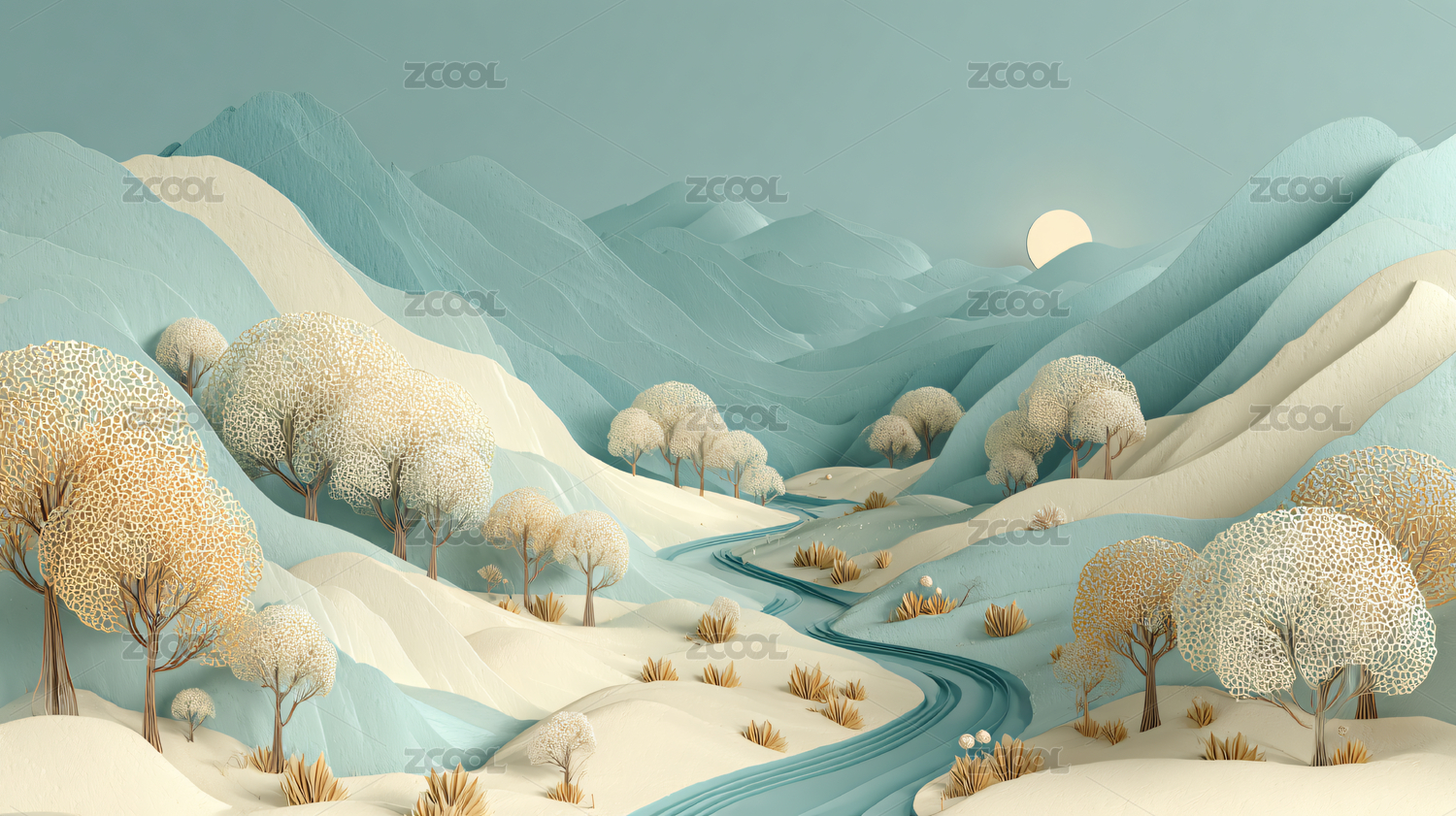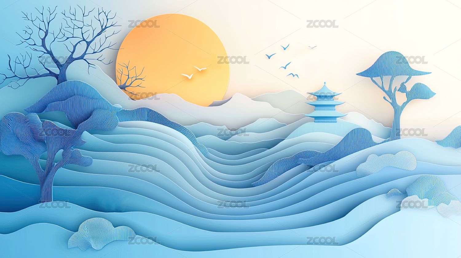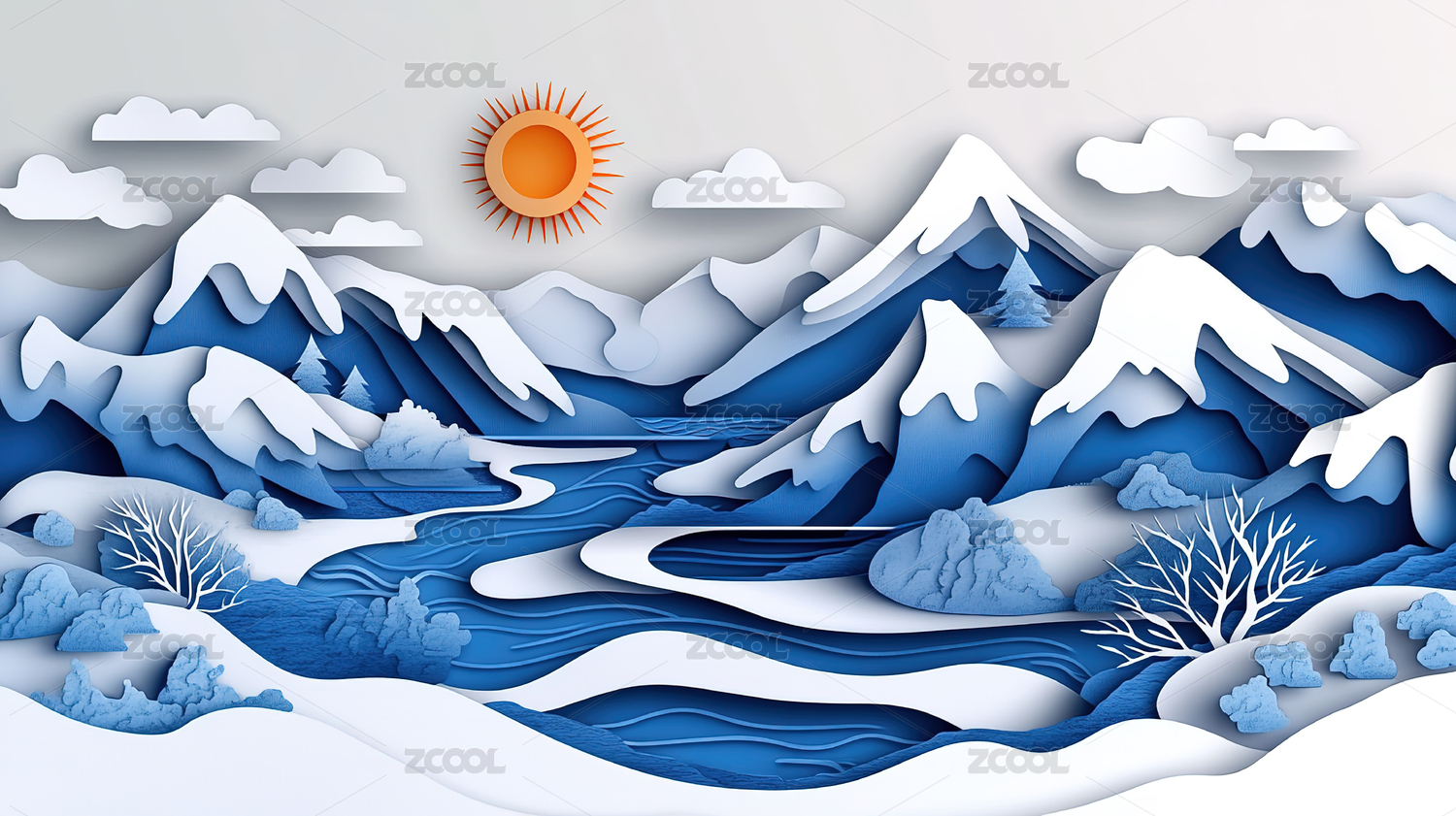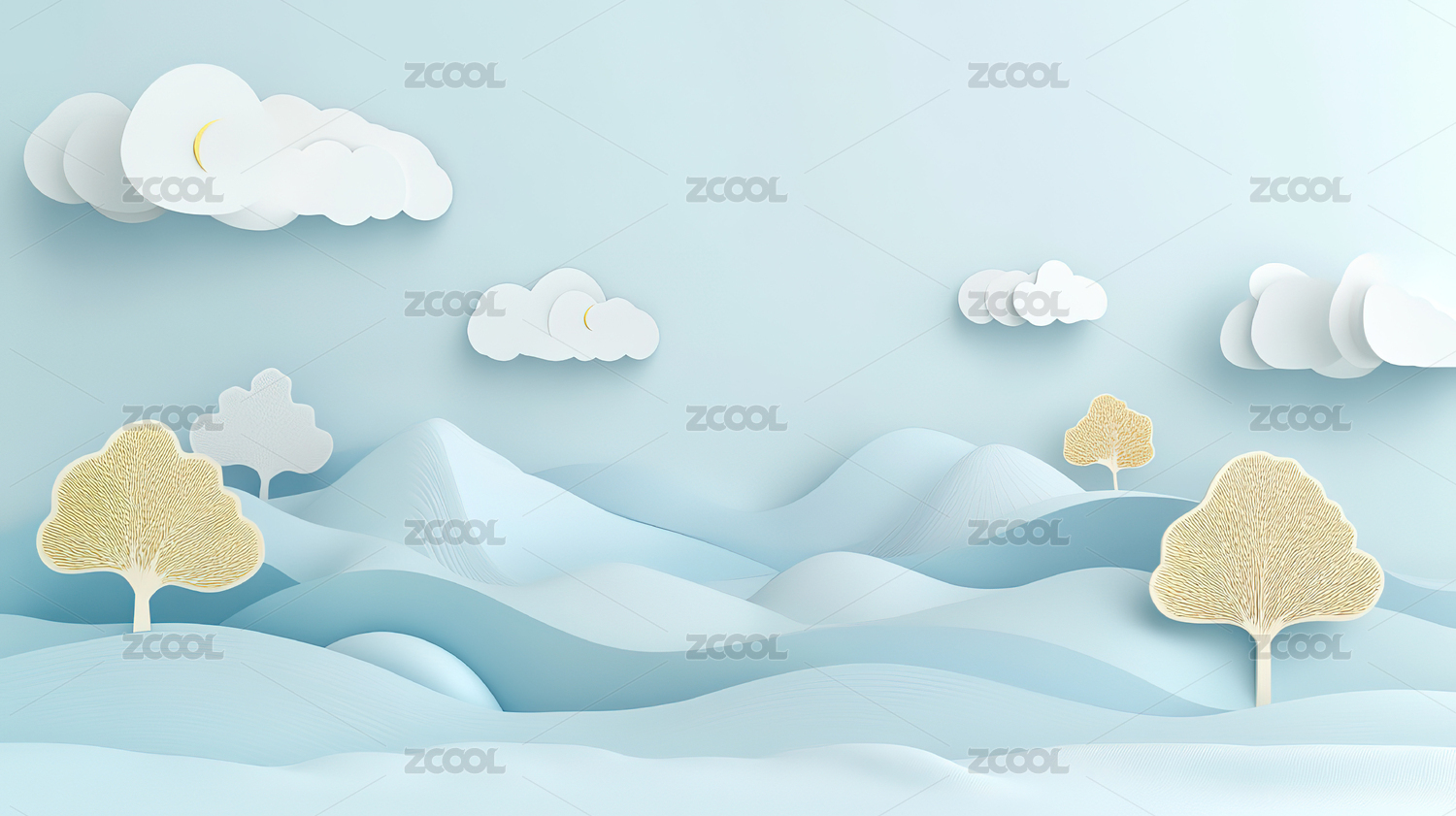 白色,背景,蓝色,简约,树木,宁静,冬季,纸艺,山峦,静谧