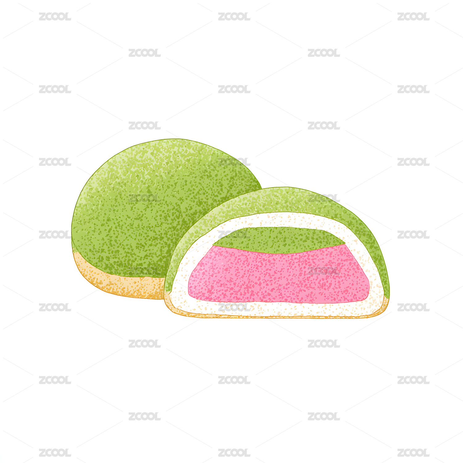 甜点,美食,水彩,水彩画,抹茶,大福,和菓子,绿色,食品,日本