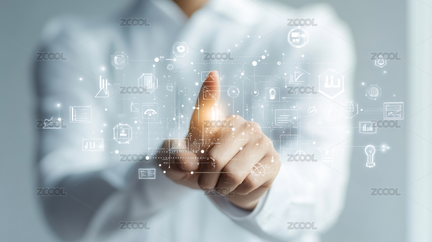 虚拟,商务,人士,现代,未来,科技,屏幕,显示,触摸,界面