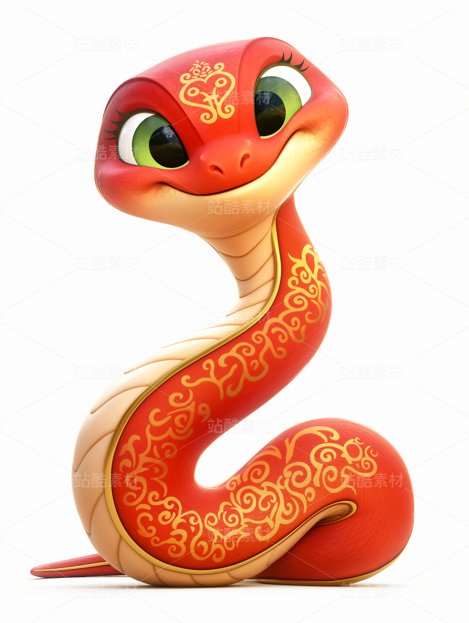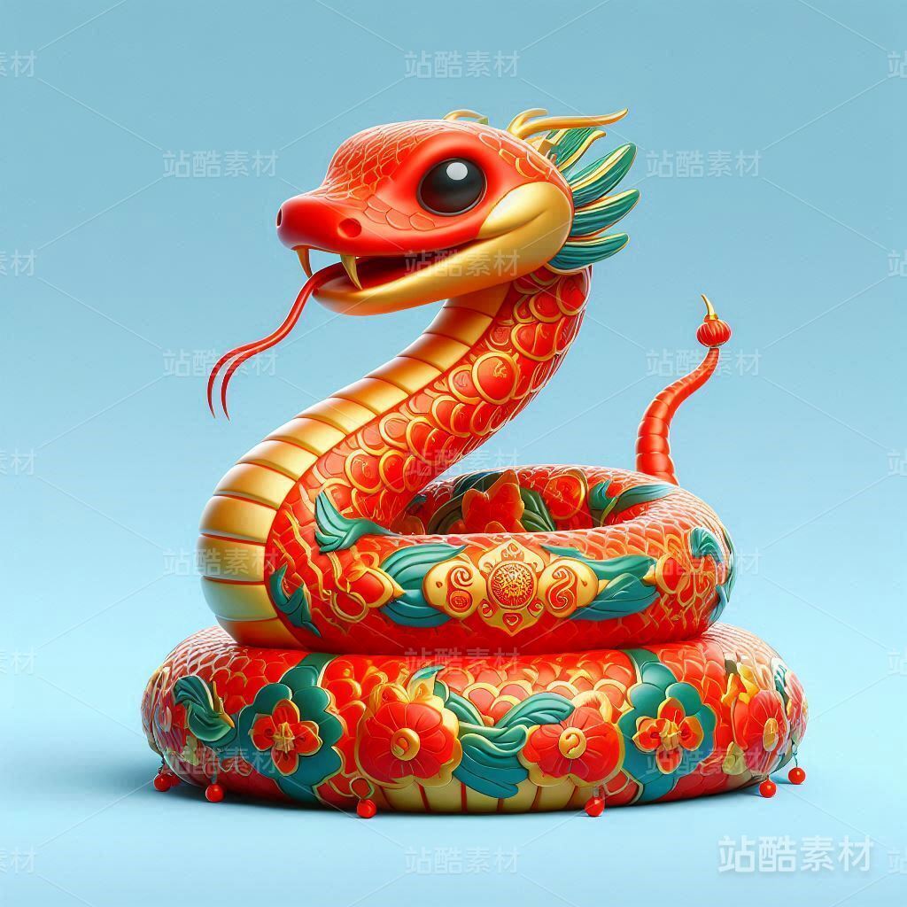 蛇年IP卡通形象吉祥物新年2025新春C4D三维渲染