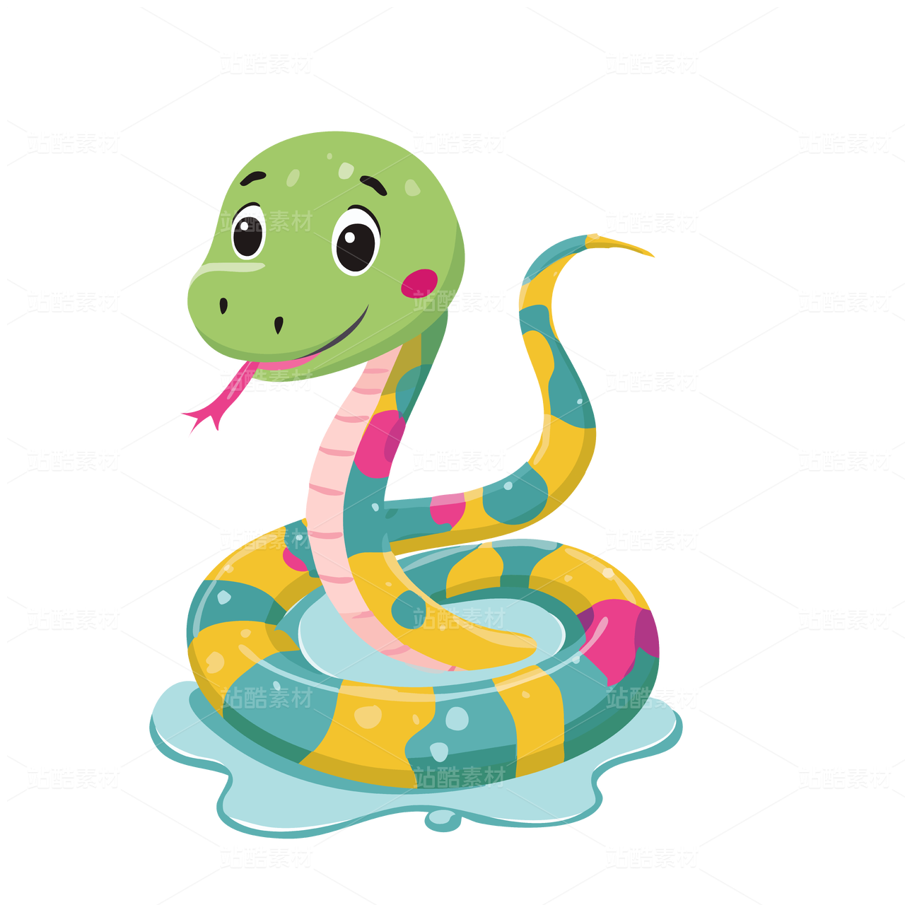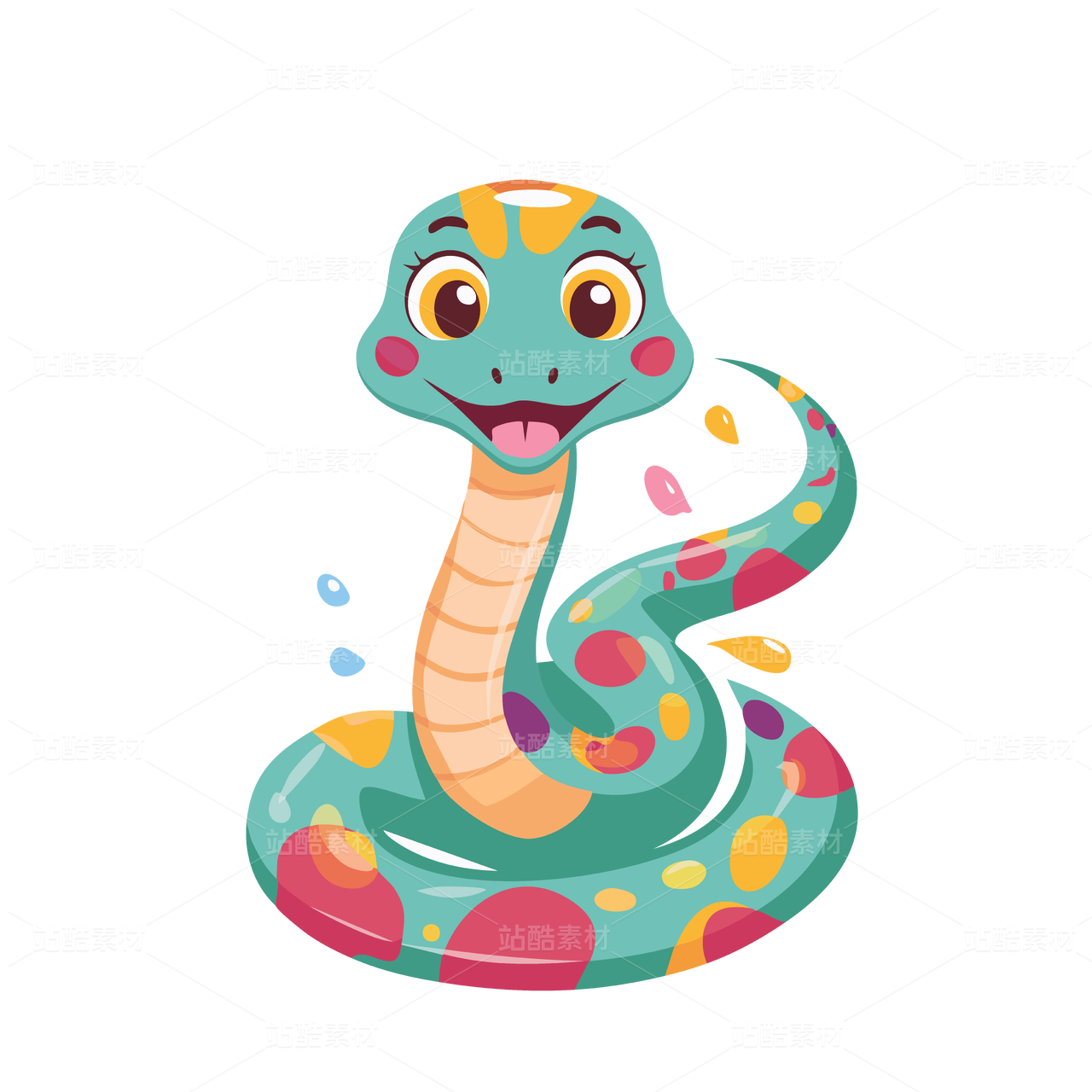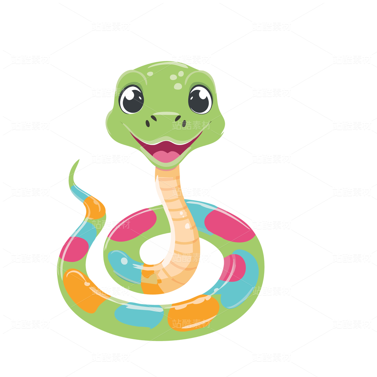 蛇年生肖蛇五彩可爱蛇卡通矢量图可编辑