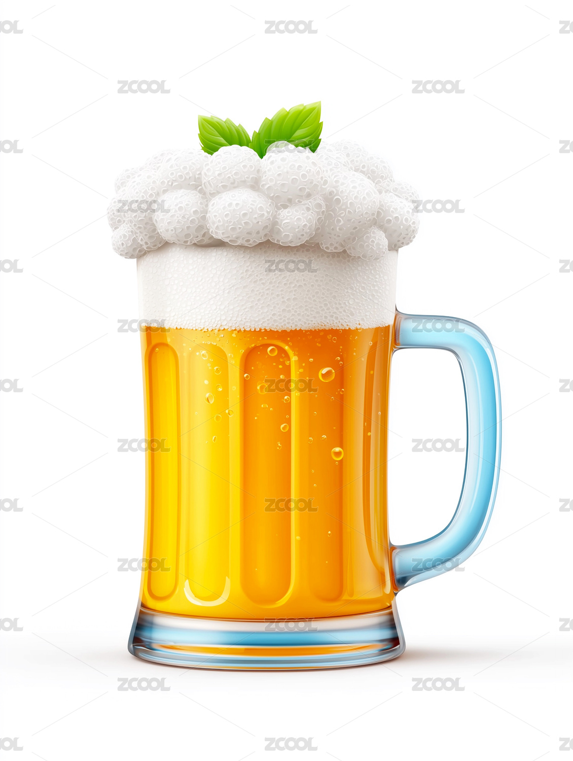 白色背景上一杯3D卡通啤酒