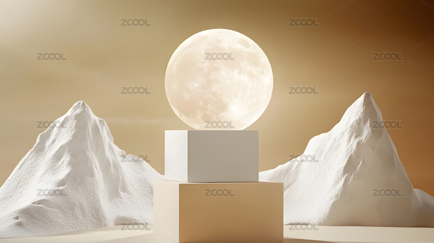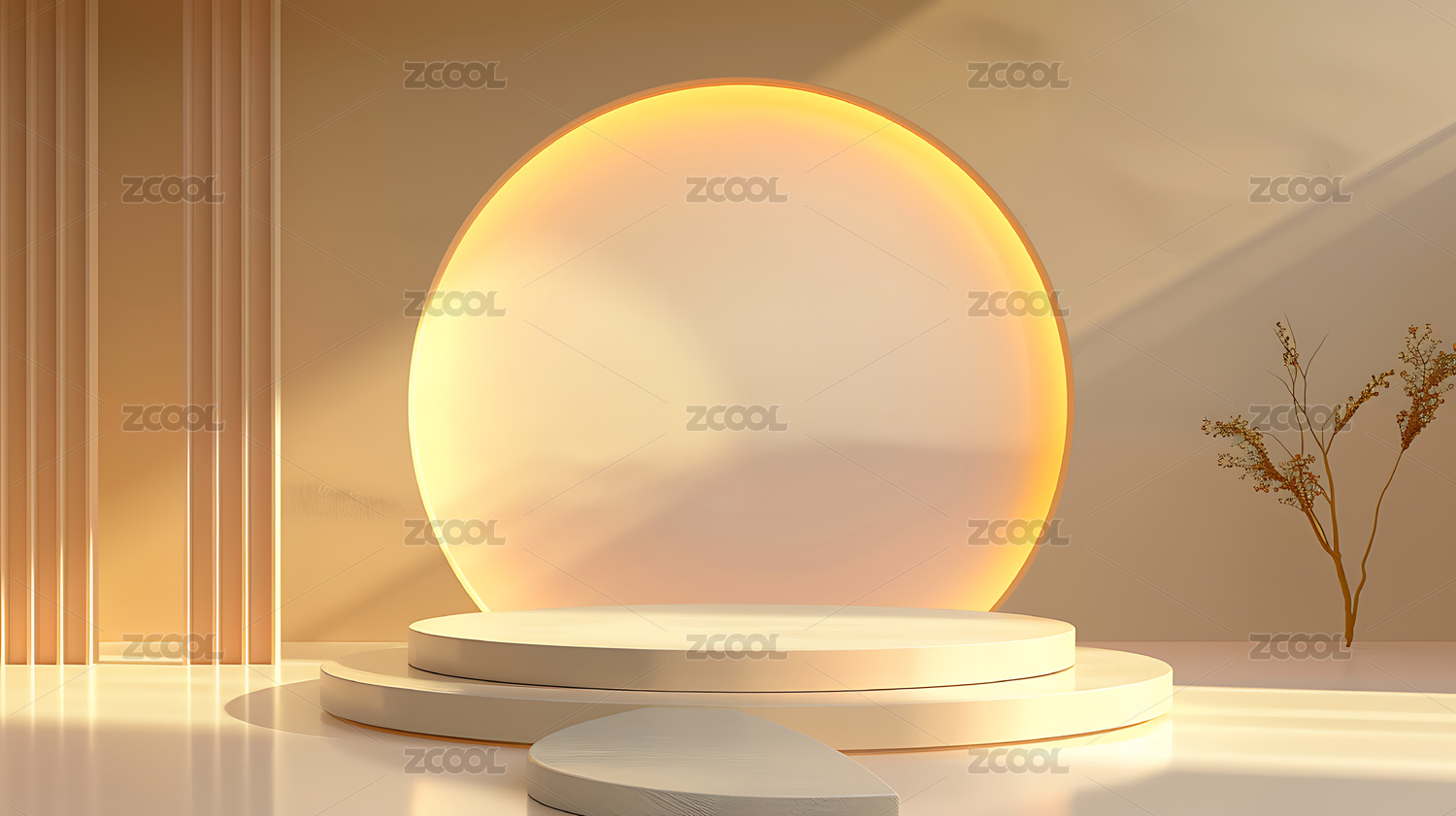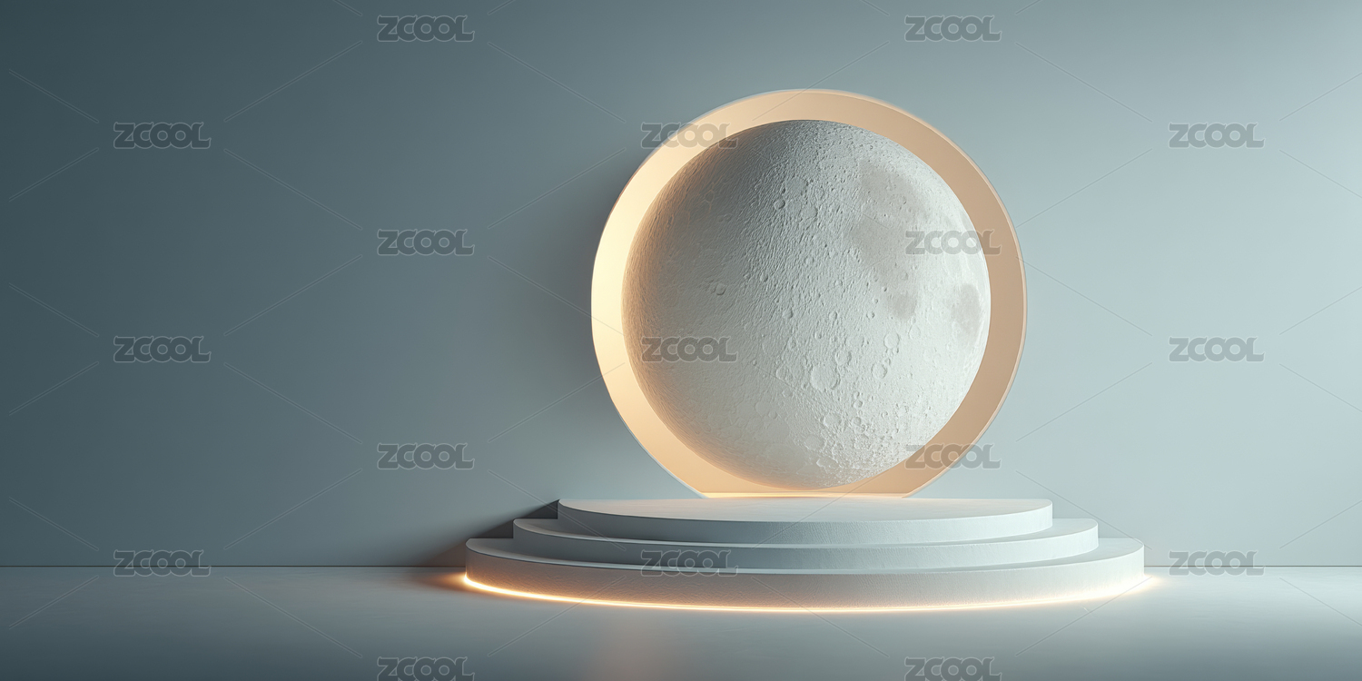 明亮大气极简高端圆月产品展台背景