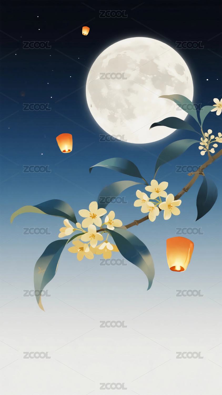 兔子,月亮,灯笼,桂花,中国风,传统,节日,祝福,庆典,祥和