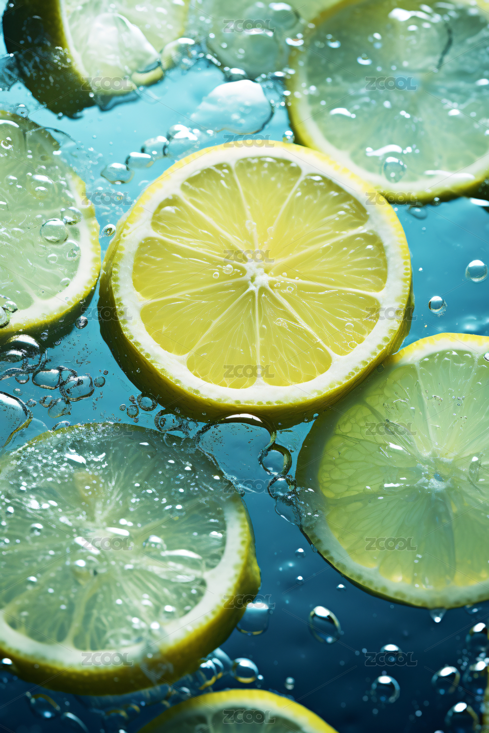青柠片,饮品配料,清凉,夏日,蓝色背景,水汽,清新,青柠,柠檬水,饮品