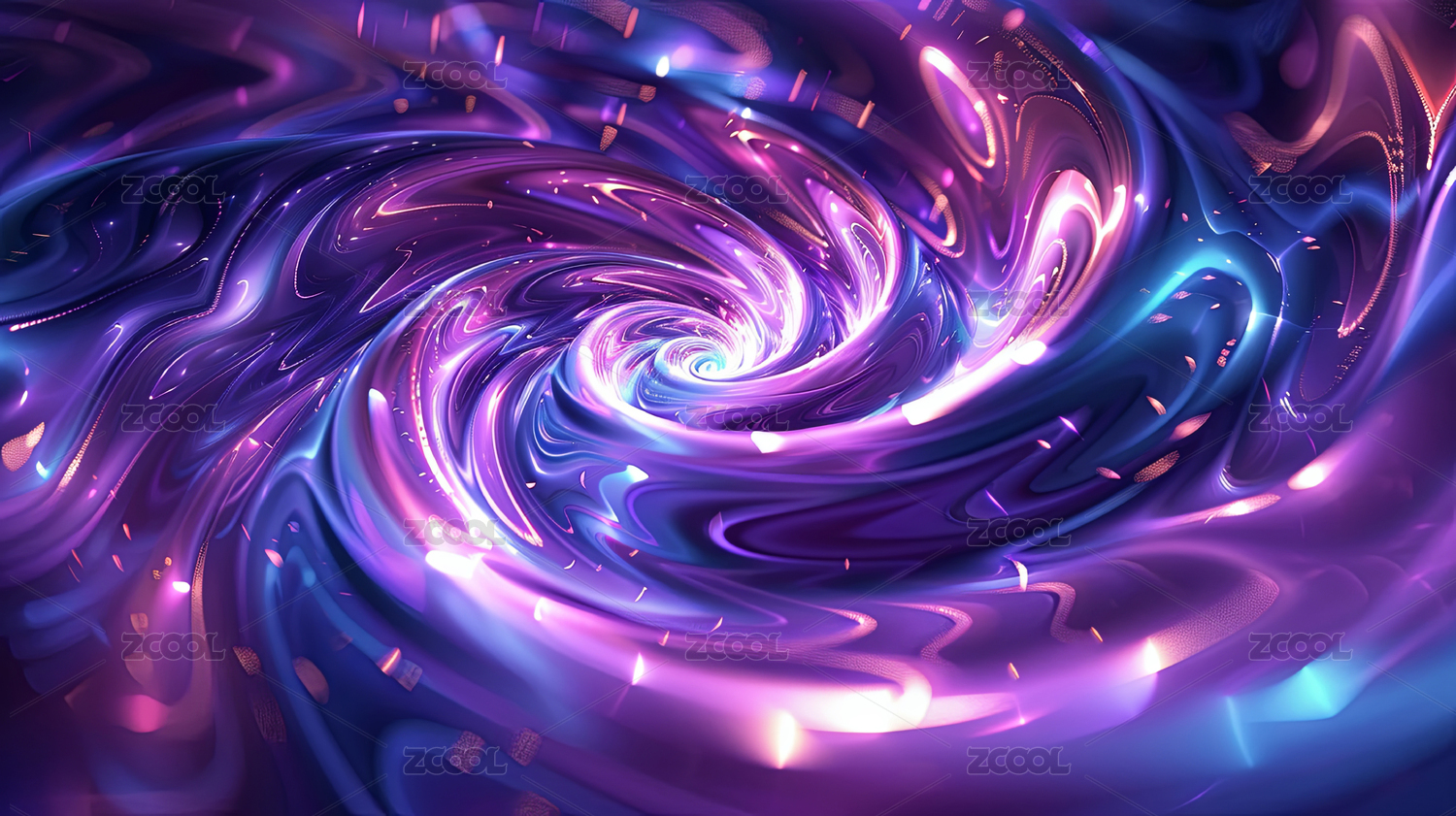 冷色调,未来感,3D艺术,梦幻光线,对称构图,商业素材,神秘氛围,金属漩涡,无限深度,光滑表面