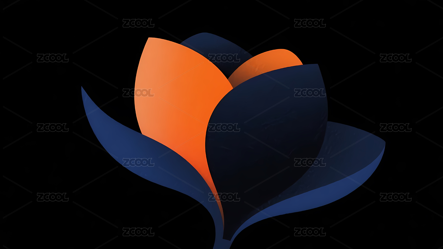 抽象橙蓝花朵