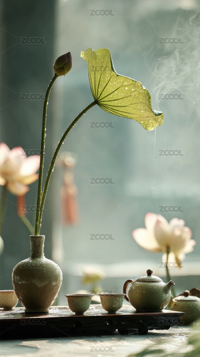 茶香袅袅荷叶静雅