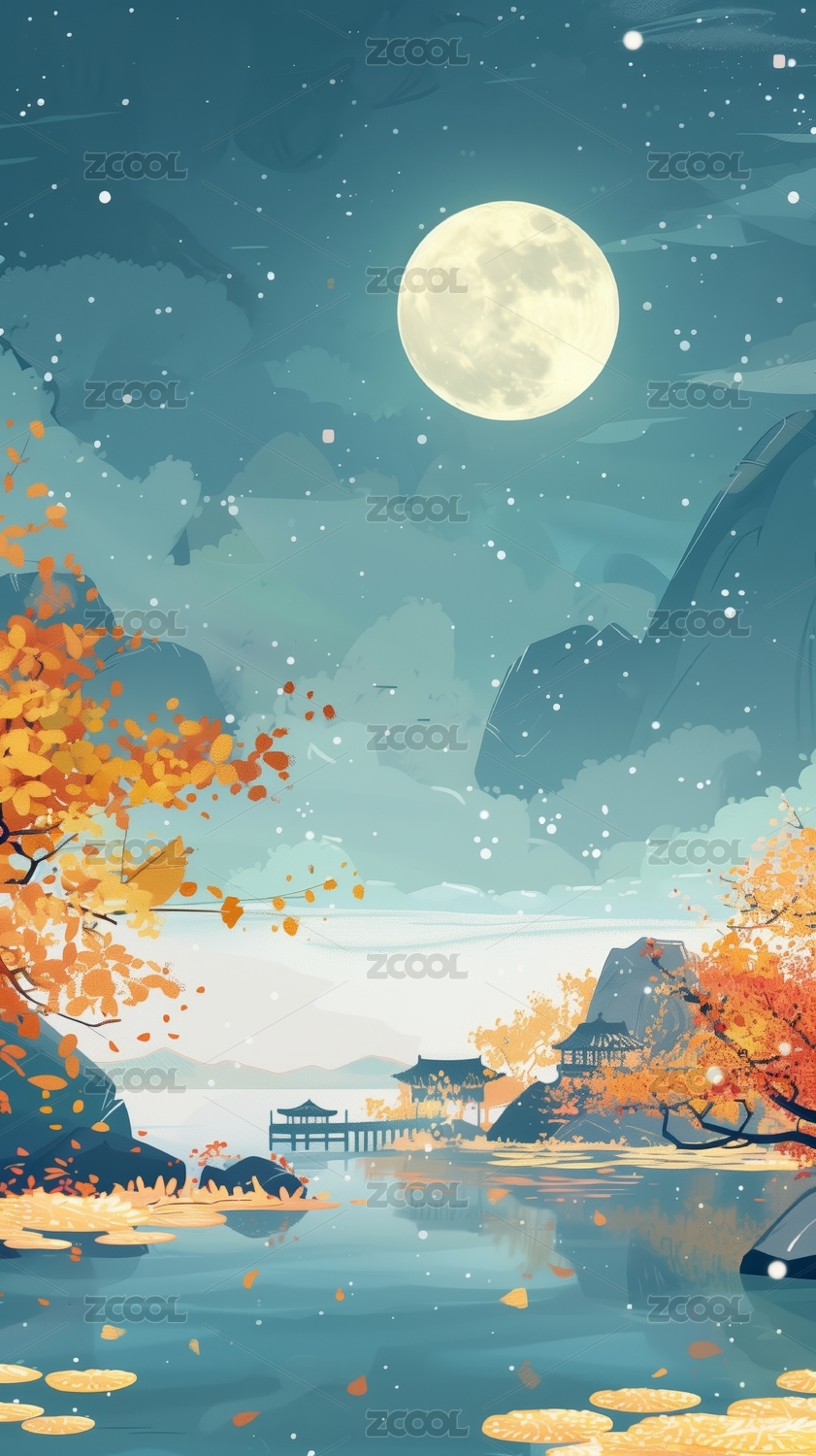 中国风月亮中秋节日风景插画