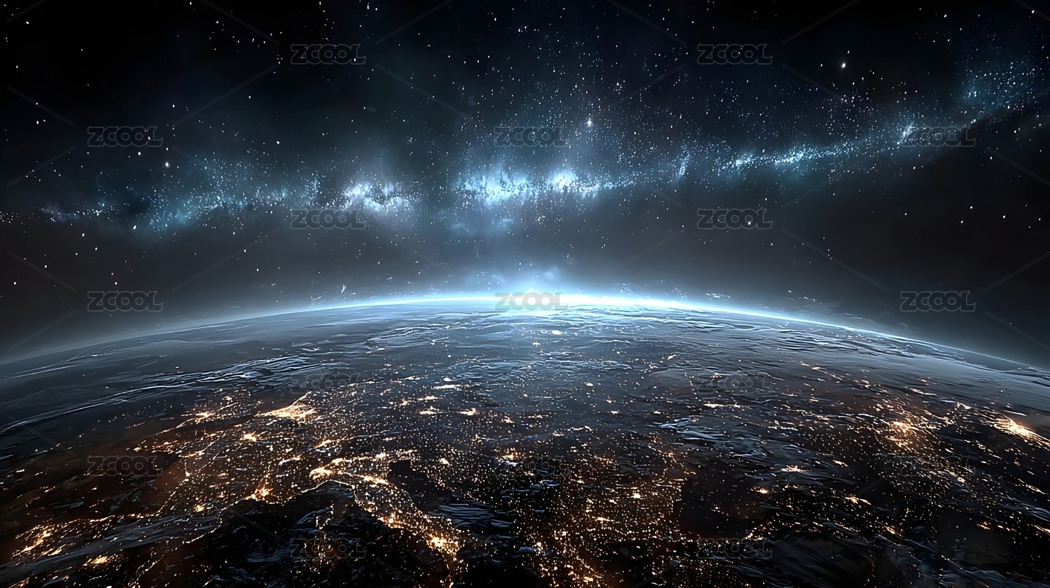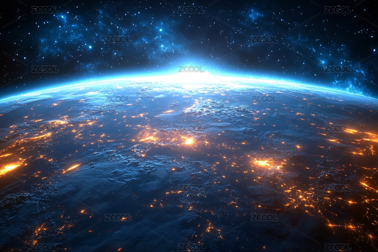 地球夜景与星空
