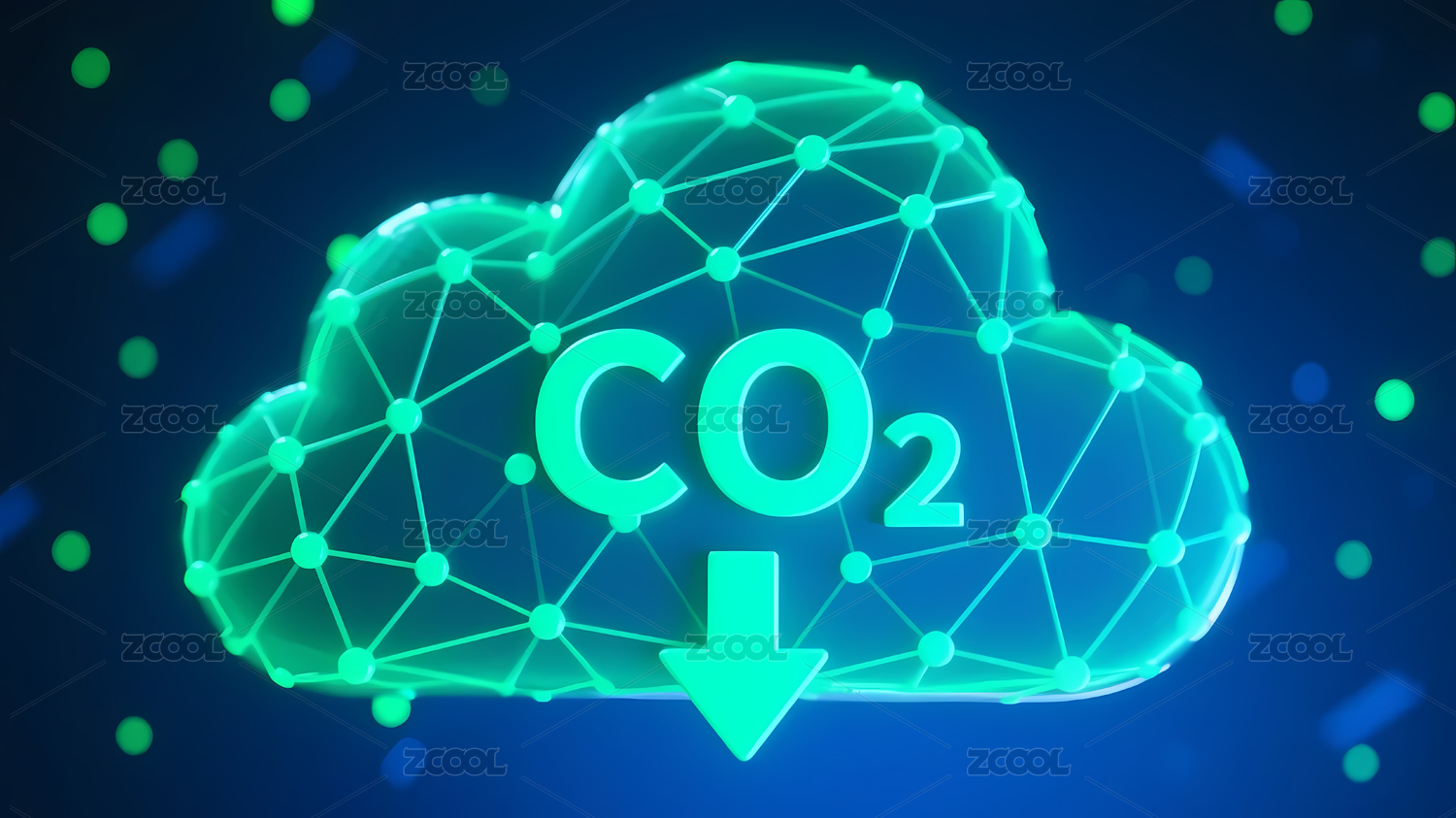 绿色, 蓝色, 科技, 光点, 渐变, 环保,云朵, 网络, CO2, 箭头