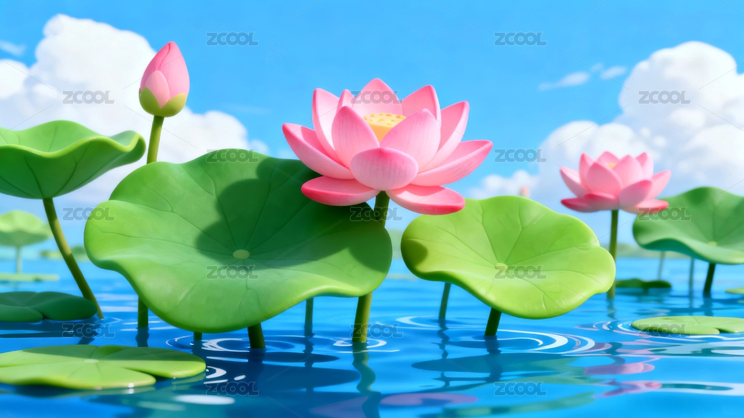 莲花,氛围,蓝天,天空,花朵,粉色,清新,花瓣,宁静,水面