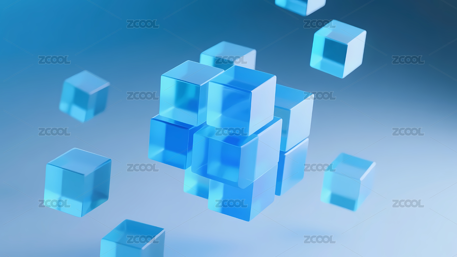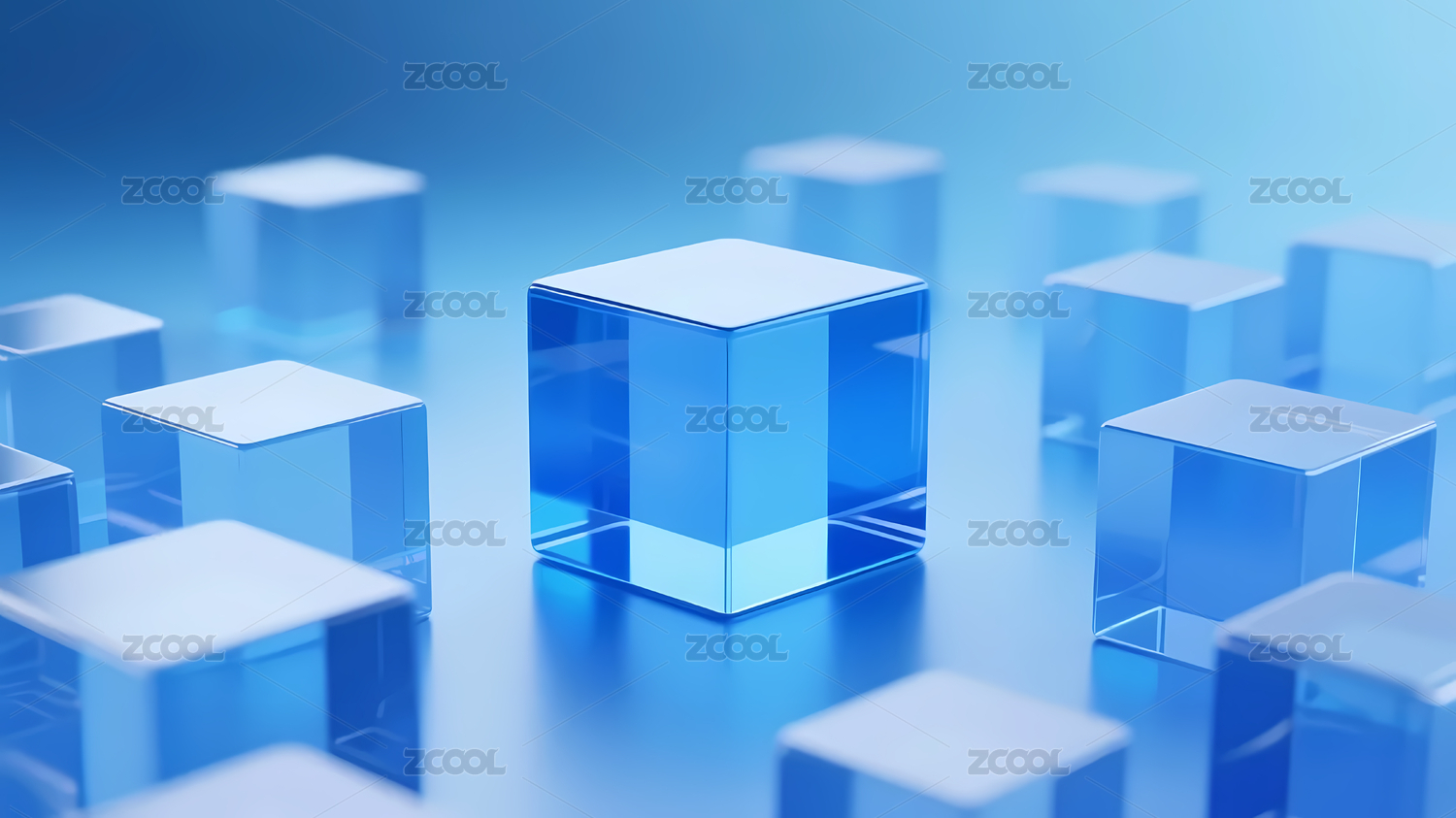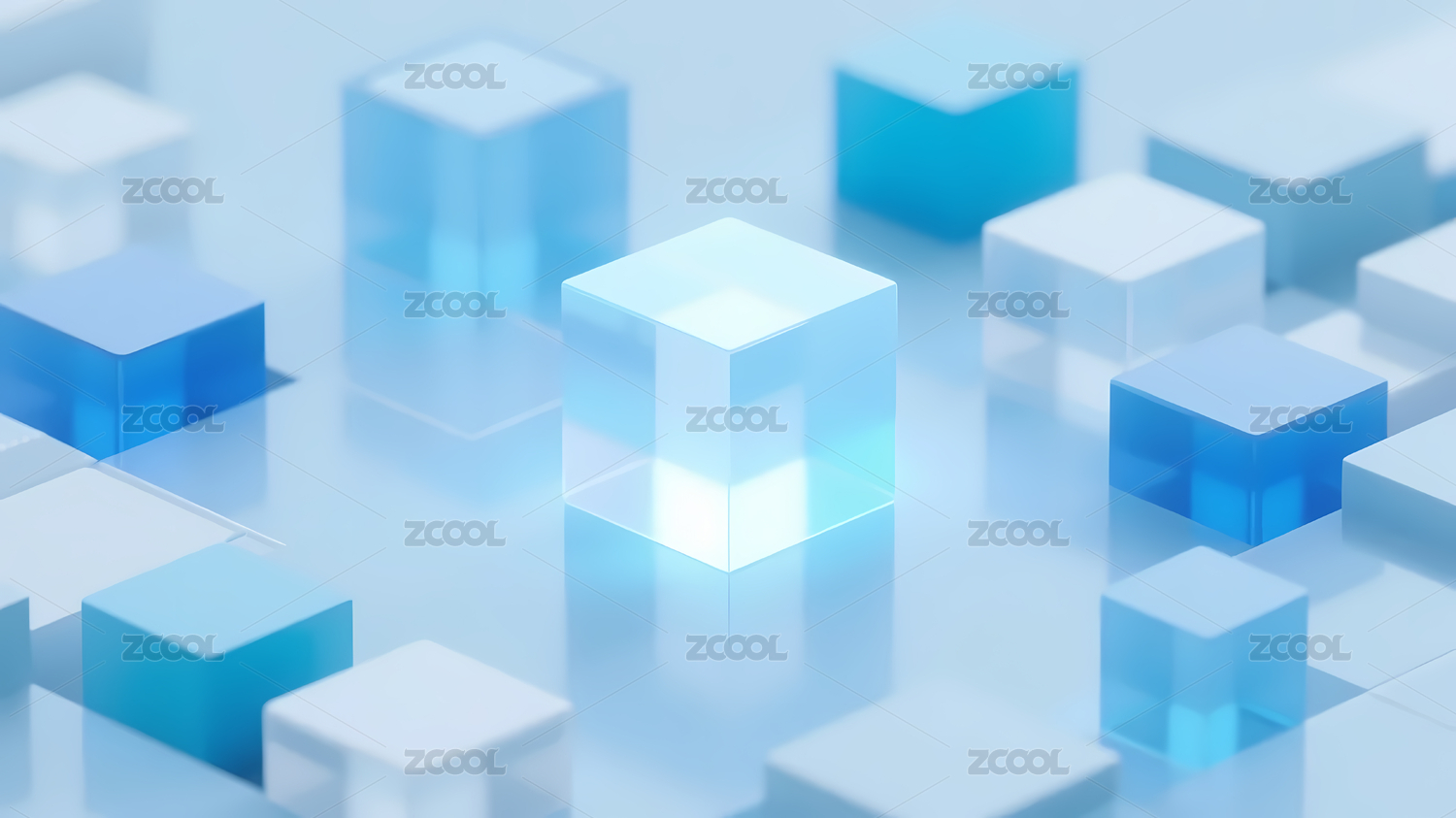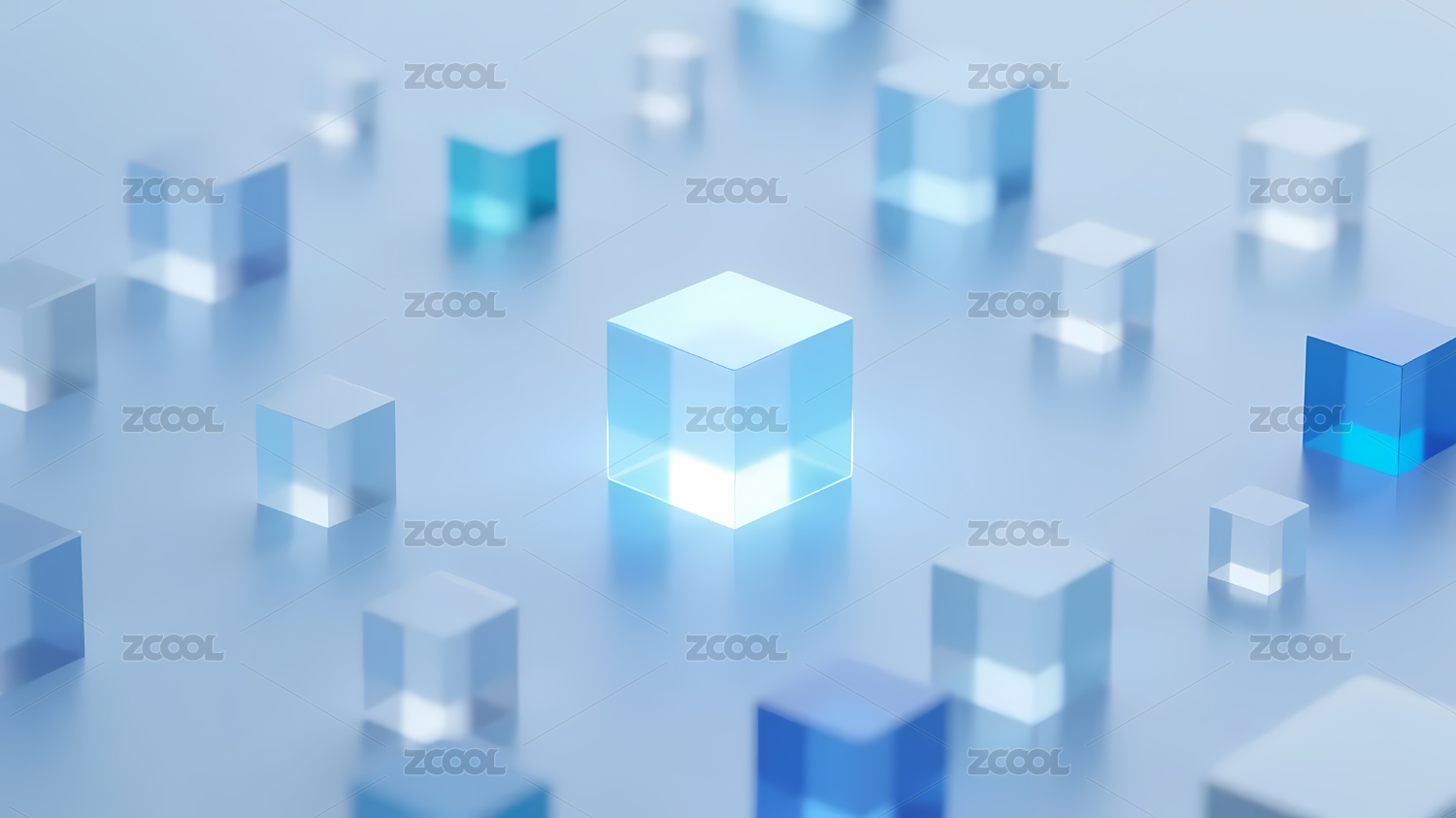 浅蓝渐变透明立方体