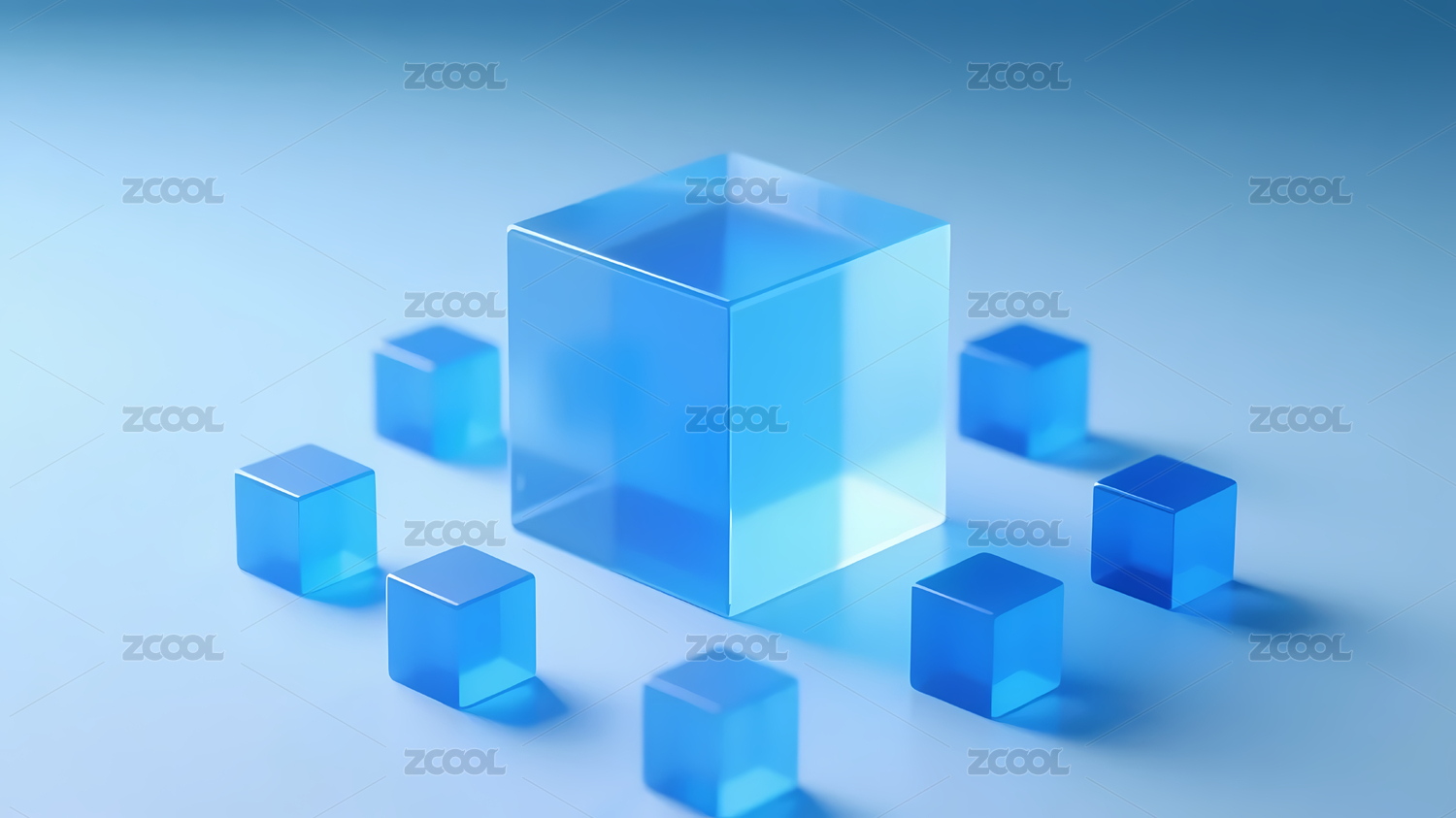 蓝色立方体与浅蓝渐变