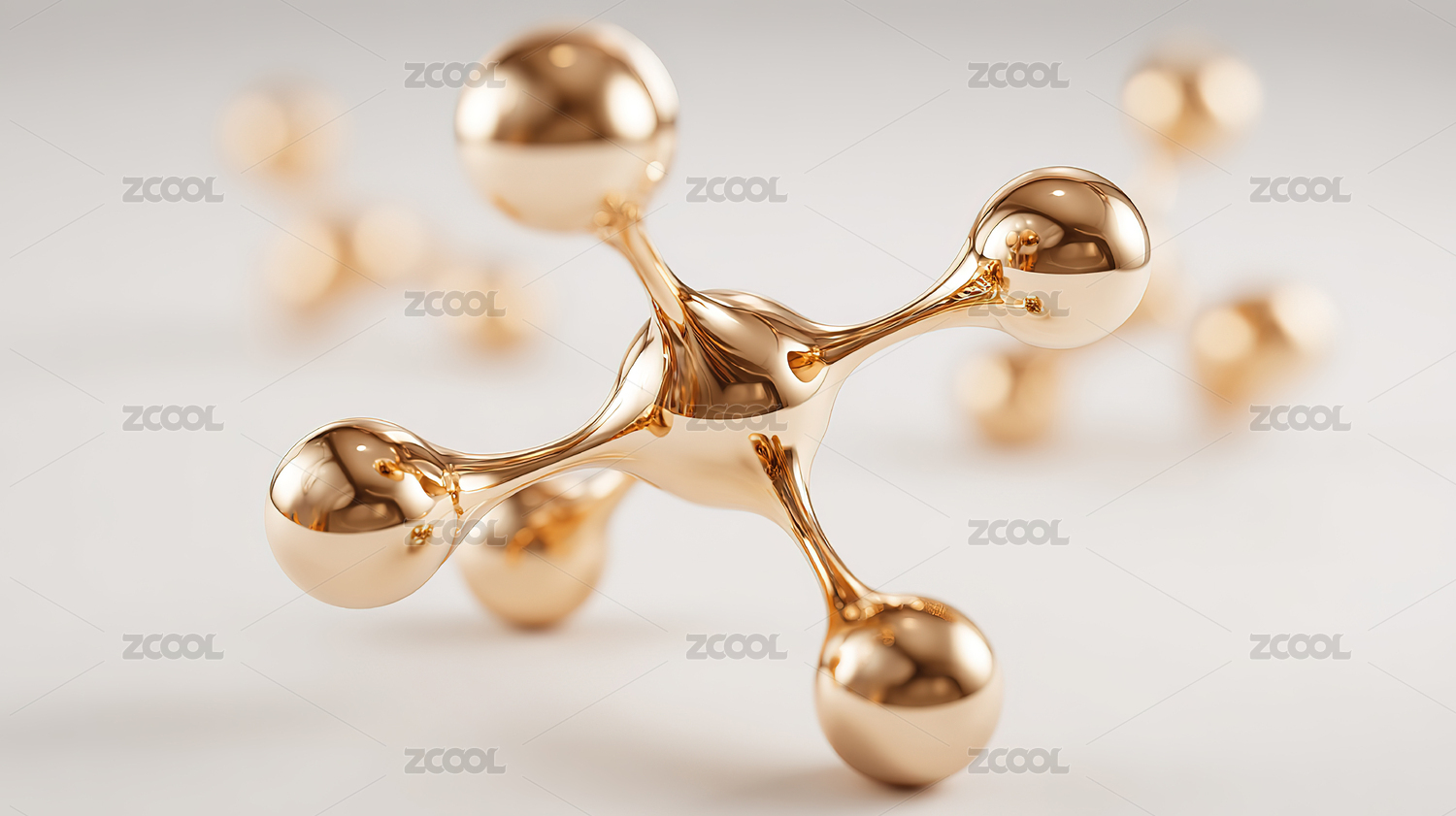 金色分子模型与小球