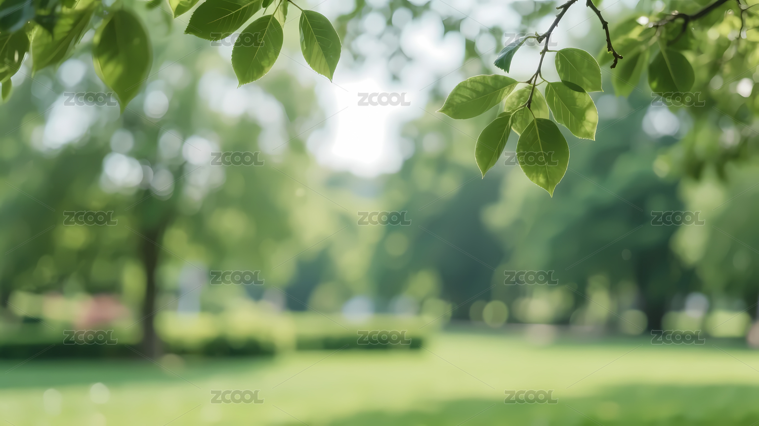 绿色树叶草地柔和风光
