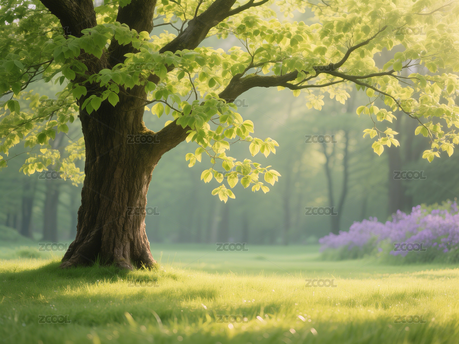 绿色树叶草地阳光温暖