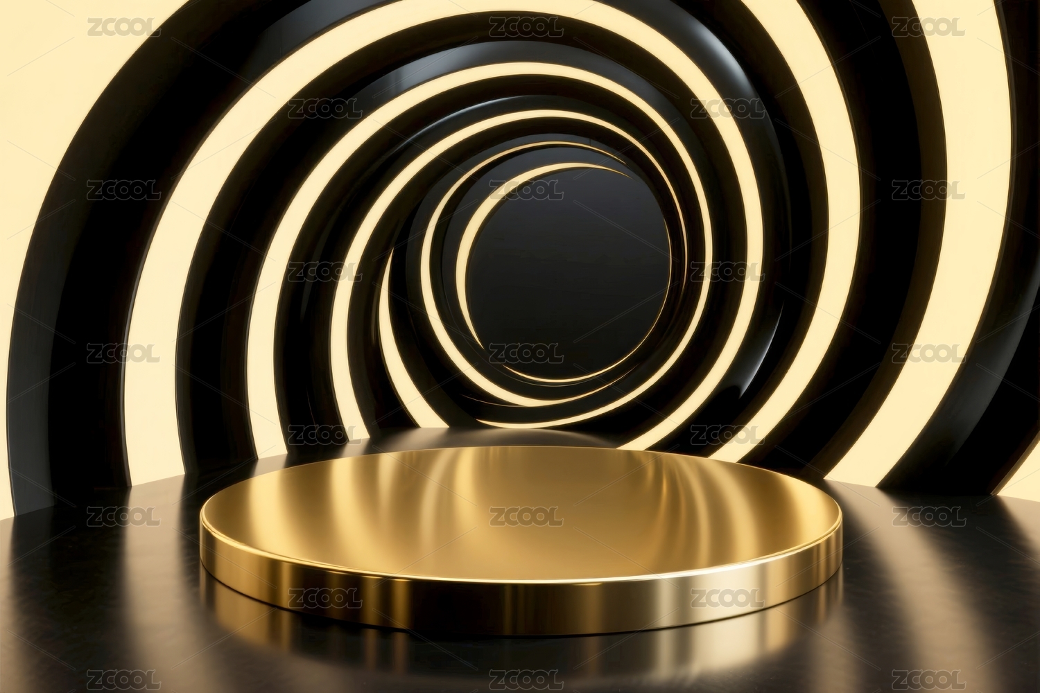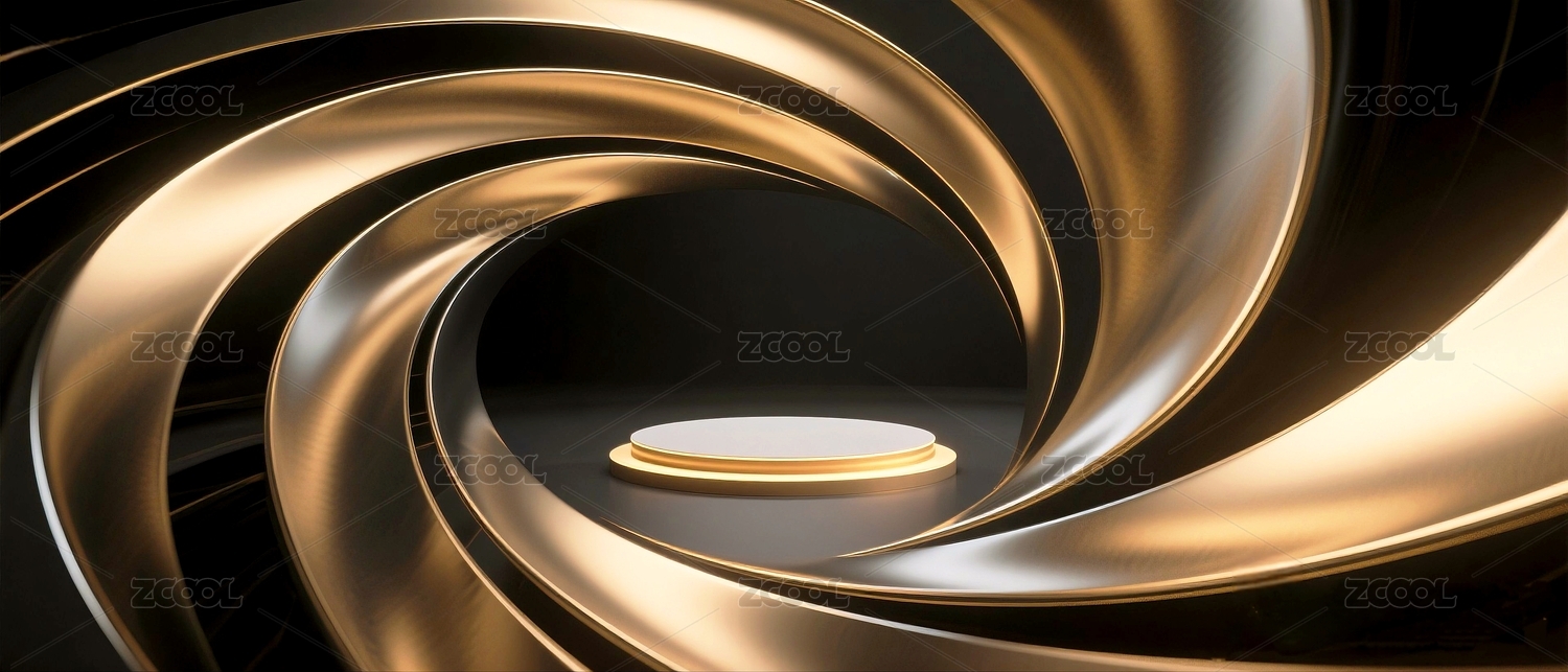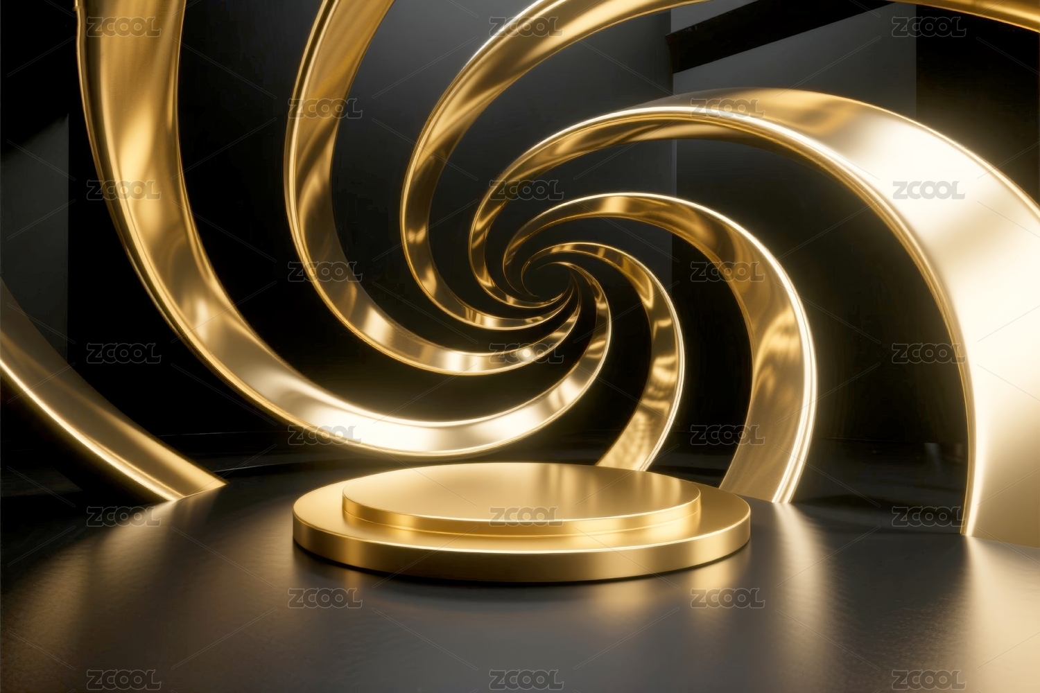 金色光辉下的漩涡舞台奢华光影下的产品展示