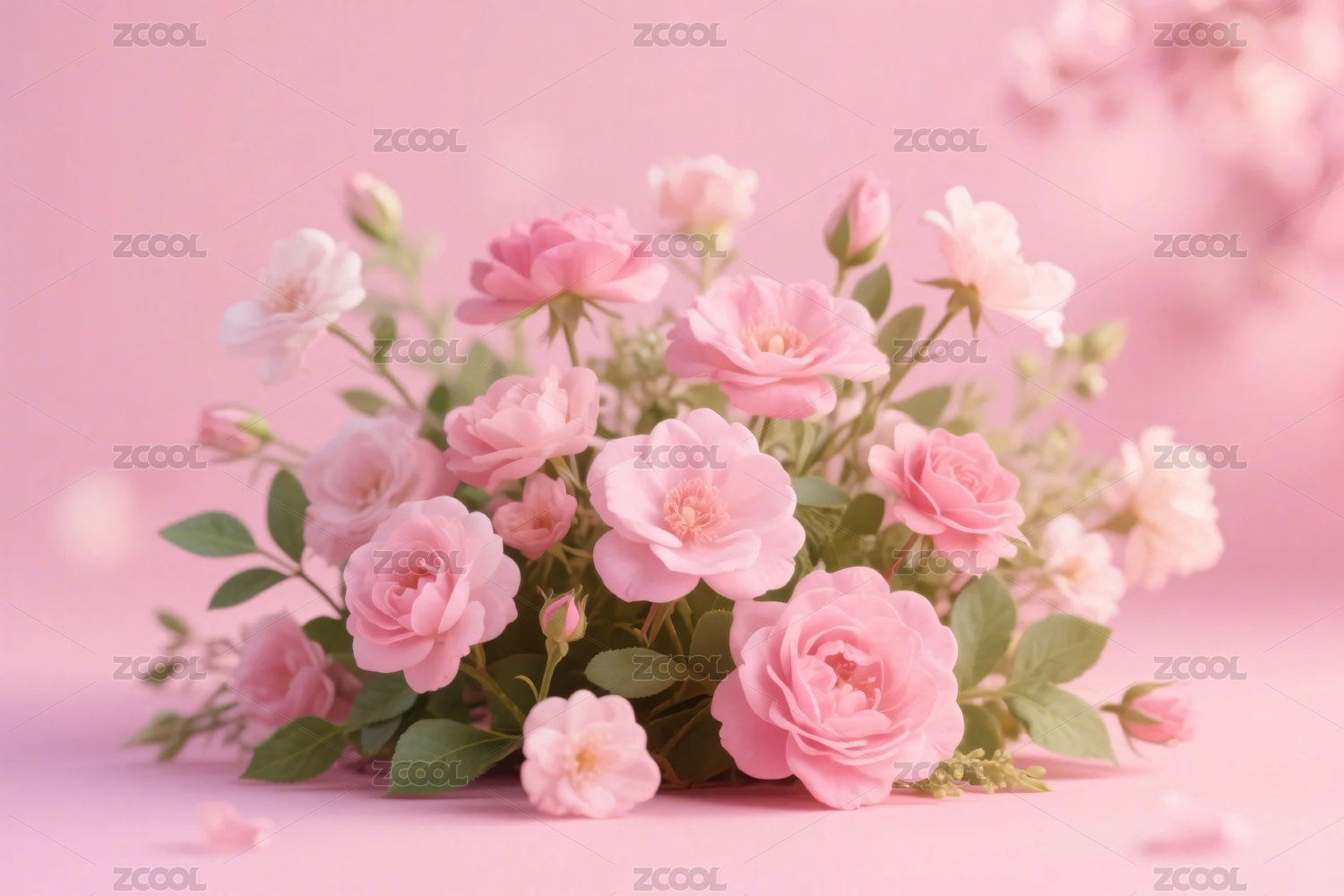 粉色背景花束精美图片