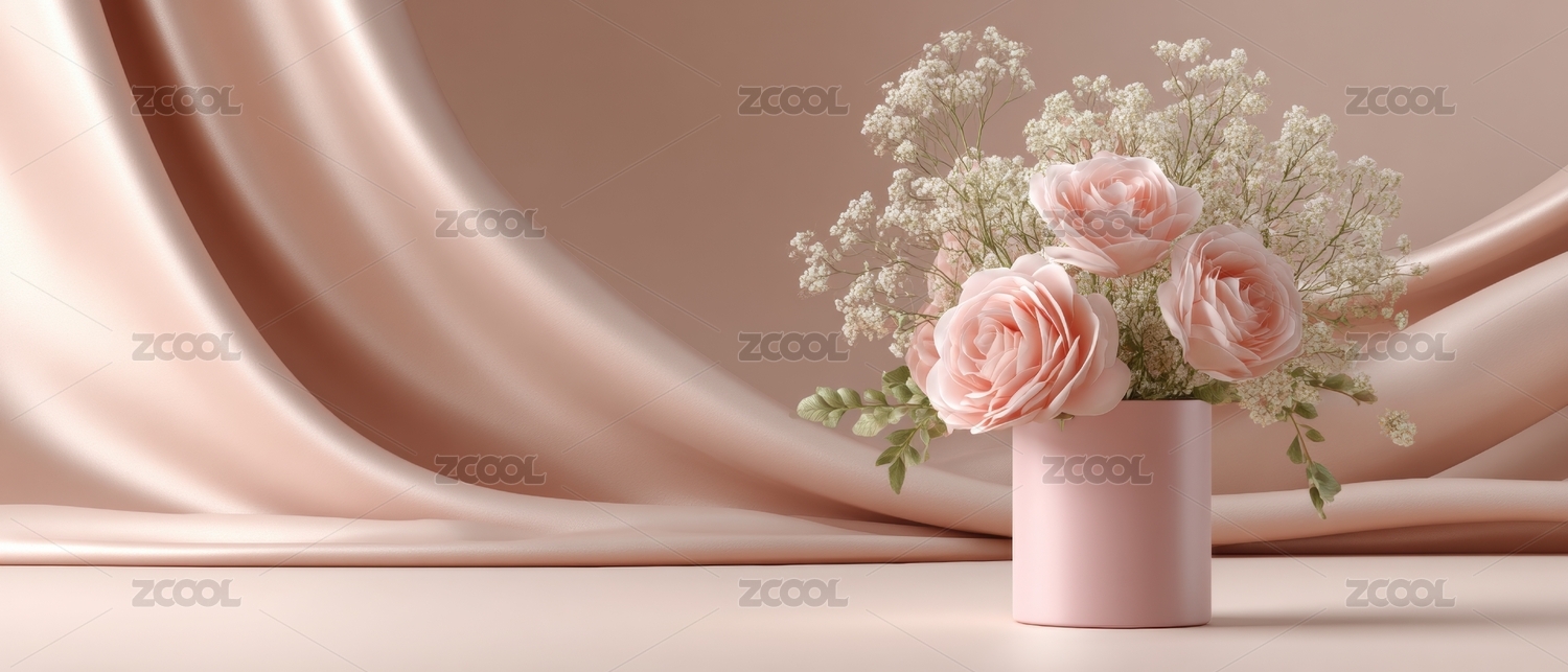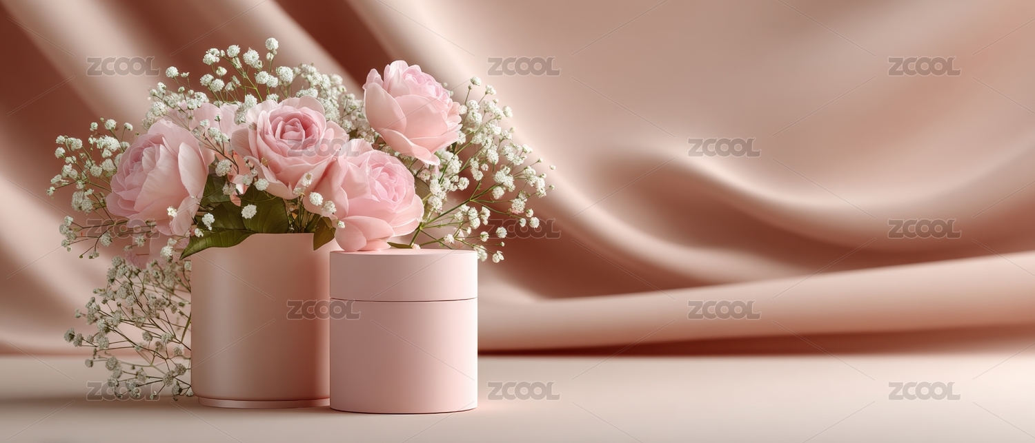 粉色玫瑰花与圆形展示台