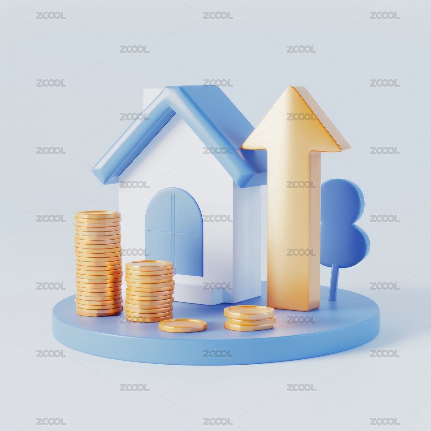 背景,小屋,金币,蓝色,堆叠,模型,货币,设计,简约,明亮