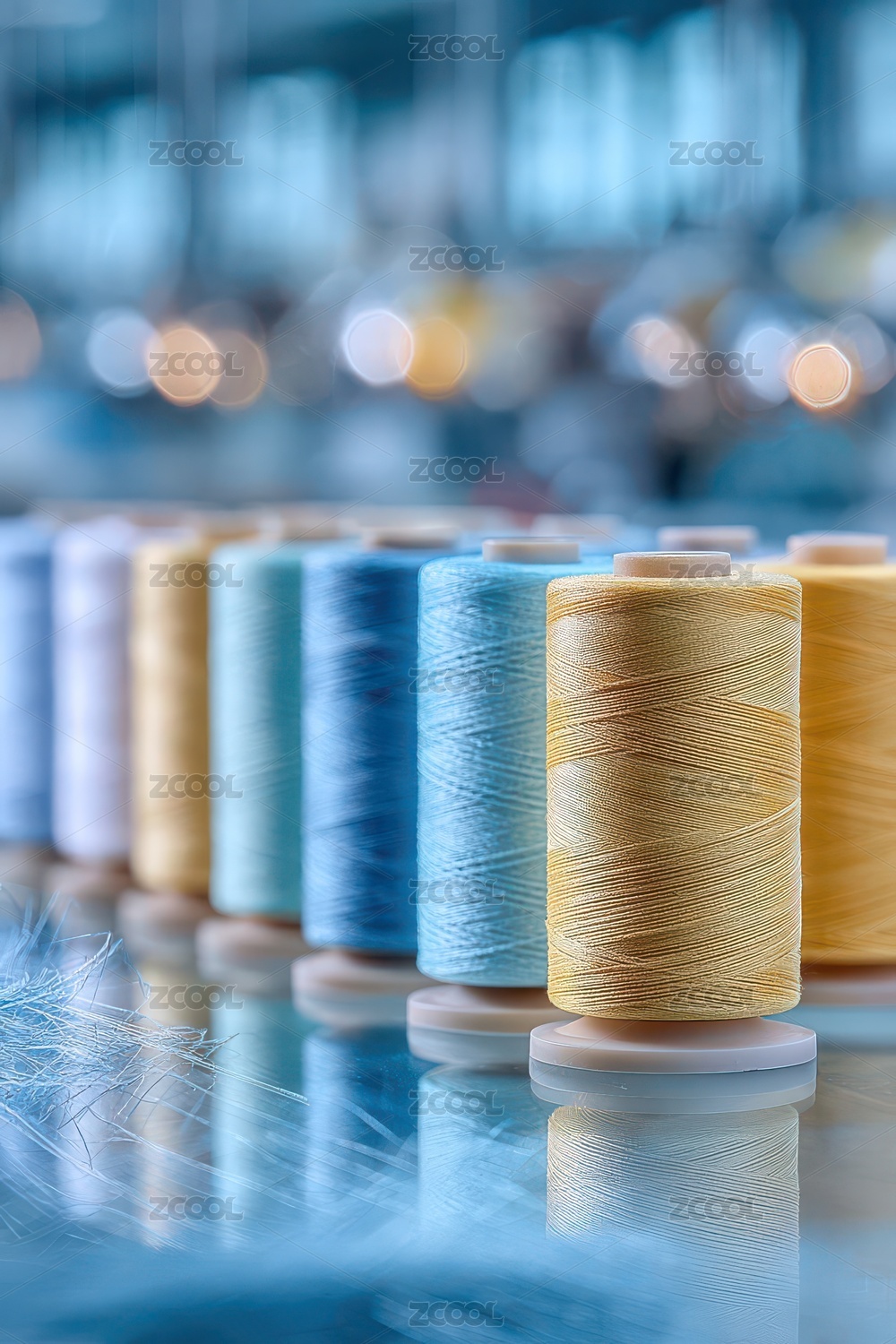 色彩斑斓的缝纫线卷在灯光下闪耀
