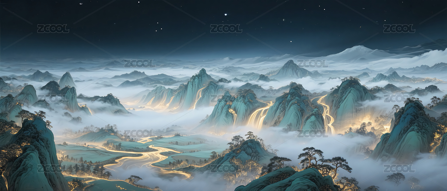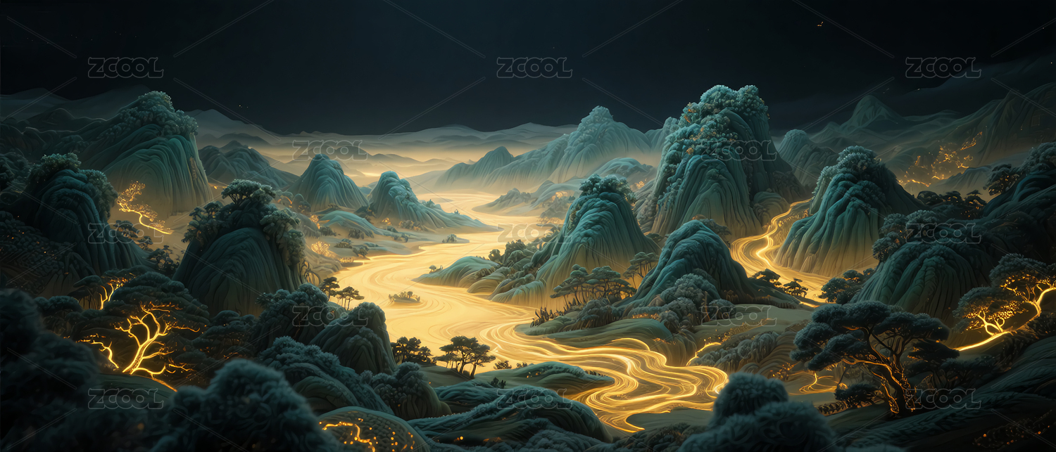 主视觉,中秋,场景,背景,传统,古典,诗意,国风,山水,艺术